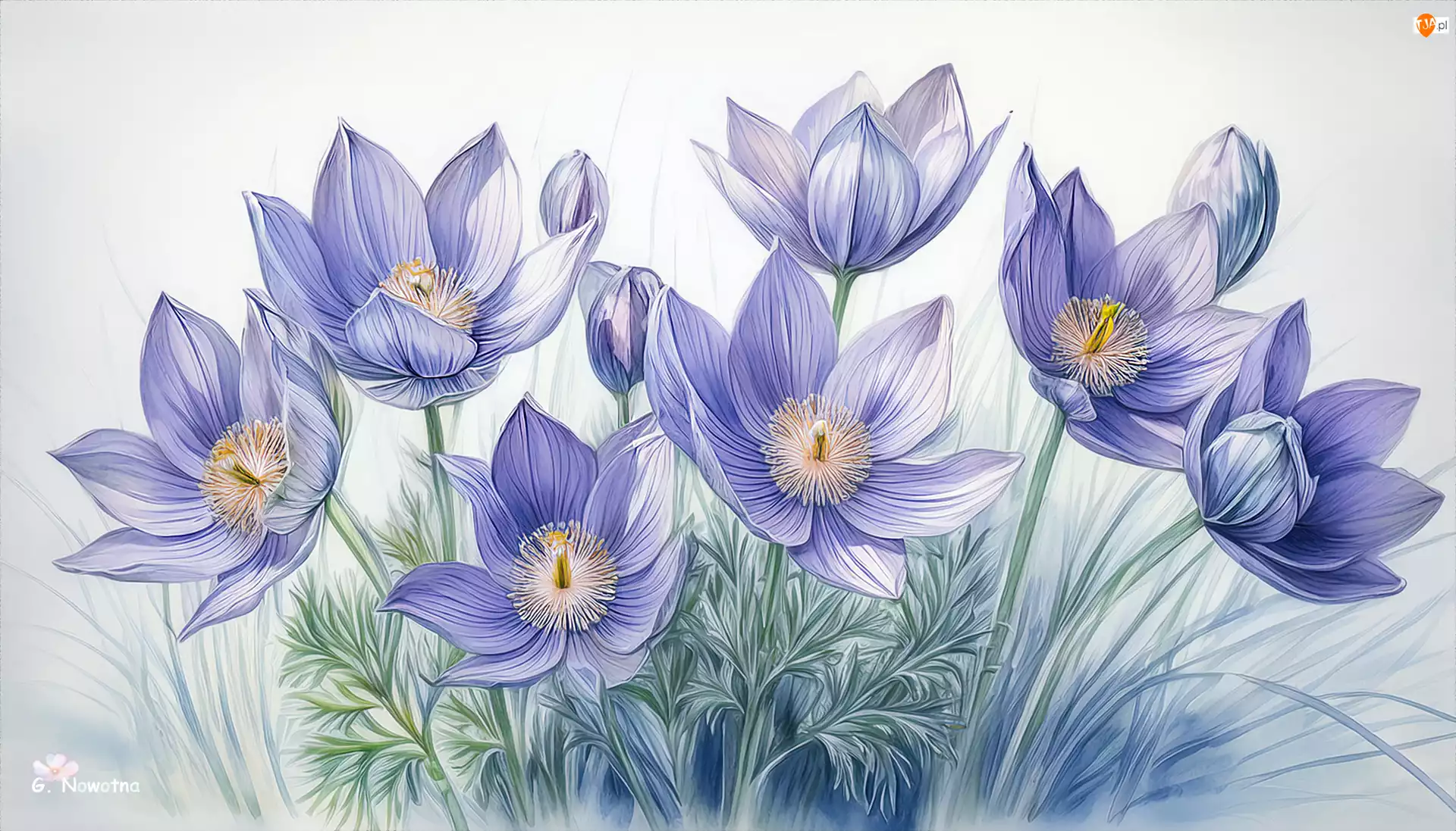Grafika, Sasanki, Kwiaty, Fioletowe