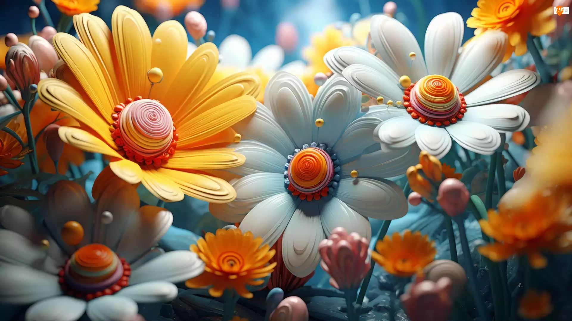 Grafika, Sztuczne, Kolorowe, Kwiaty