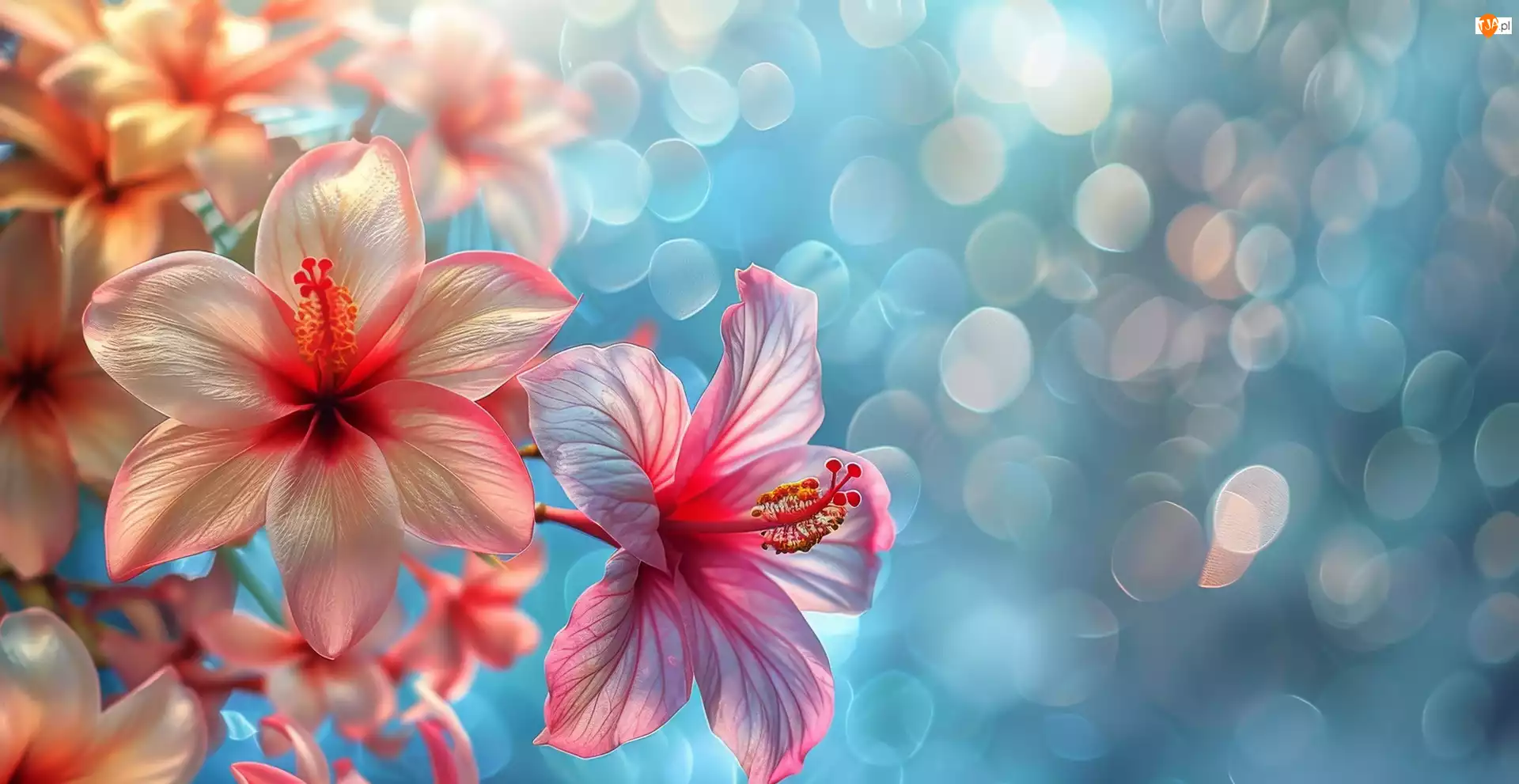 Grafika, Tło, Różowe, Kwiaty, Rozmyte