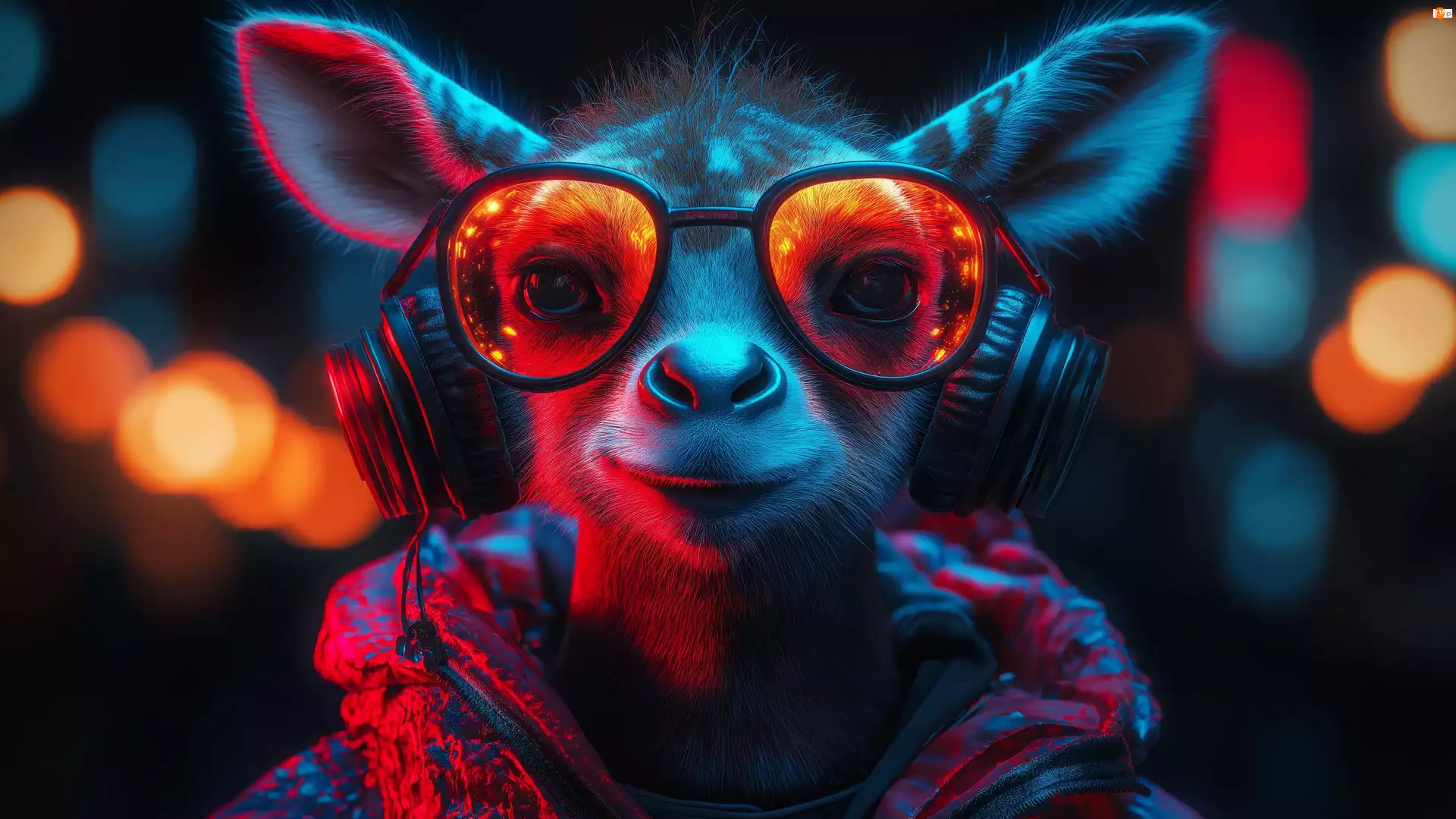 Grafika, Zwierzę, Okulary, Słuchawki