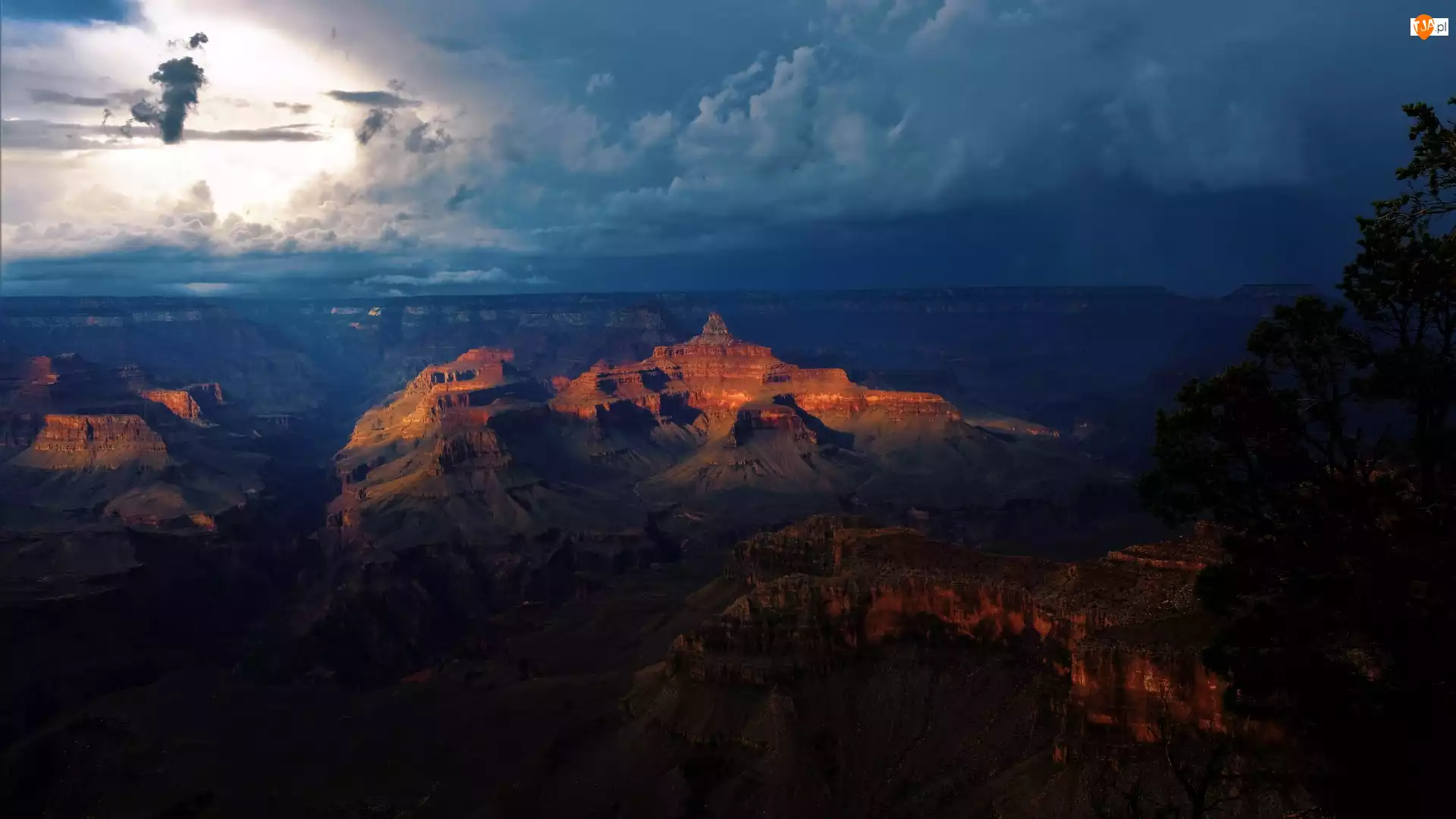 Grand Canyon, Wielki Kanion Kolorado, Stany Zjednoczone, Park Narodowy Wielkiego Kanionu, Arizona, Chmury, Góry