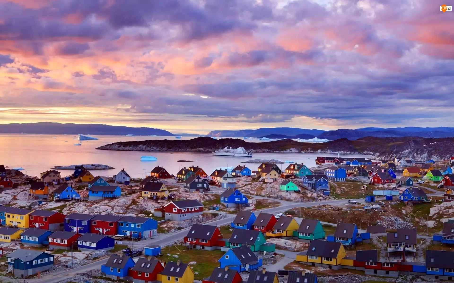 Grenlandia, Kolorowe, Miasto, Domki, Ilulissat