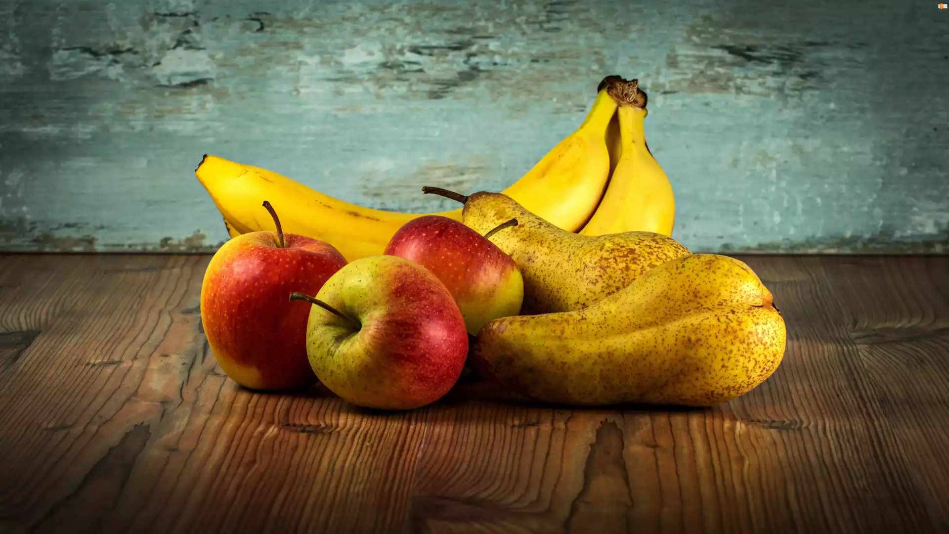 Gruszki, Kompozycja, Banany, Owoce, Jabłka