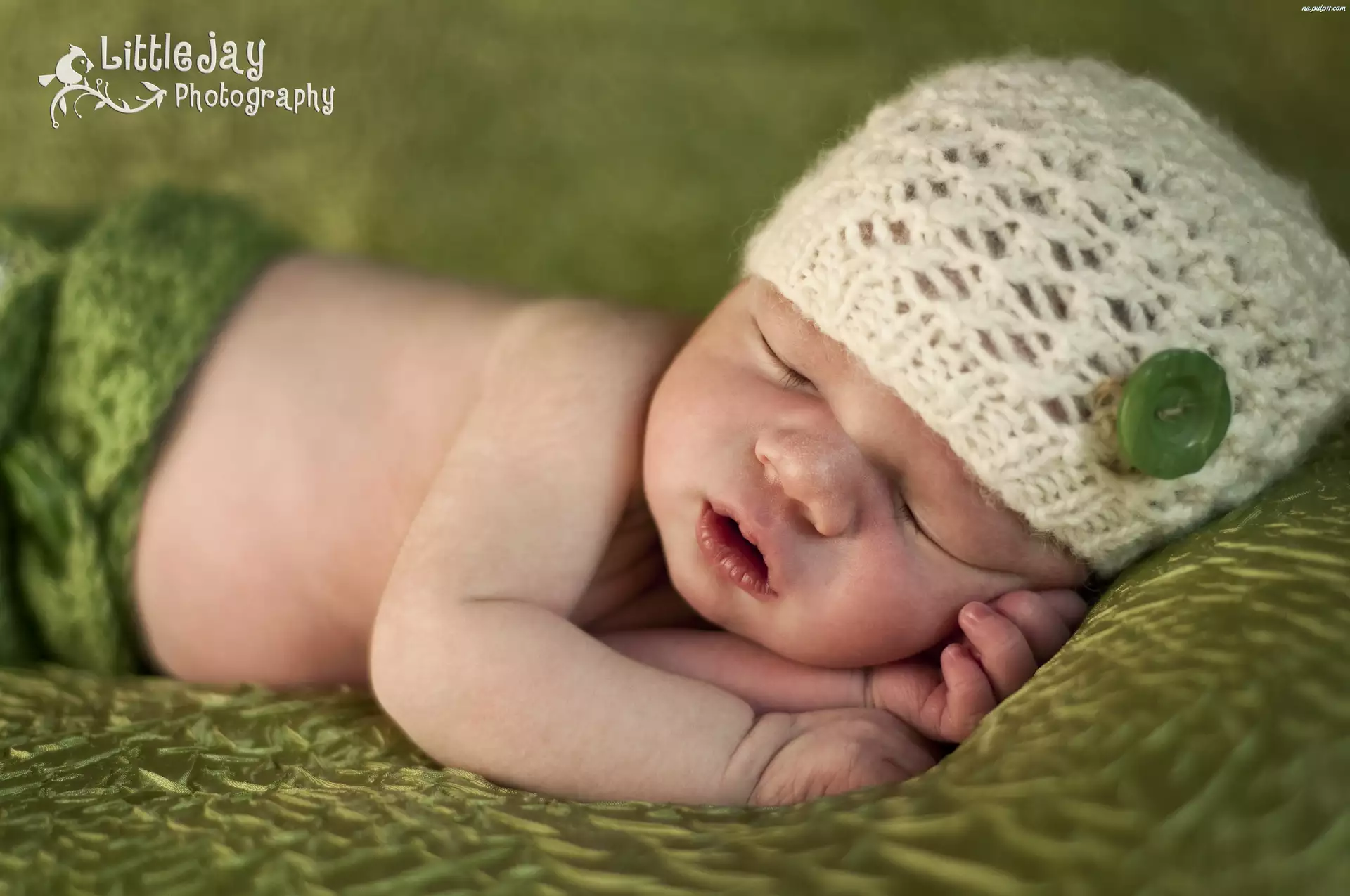Guzik, Śpiace, Biała, Niemowlę, Czapka
