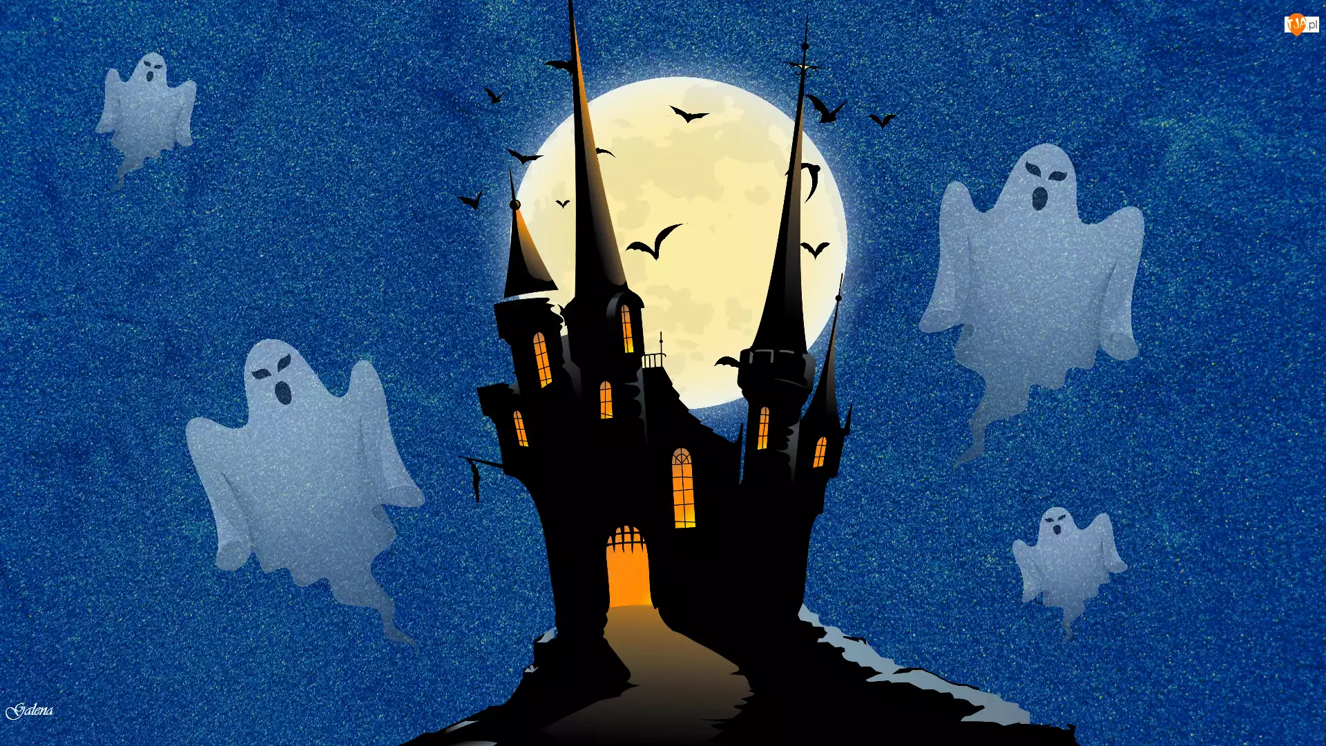 Halloween, Zamek, Księżyc, Duchy, Grafika