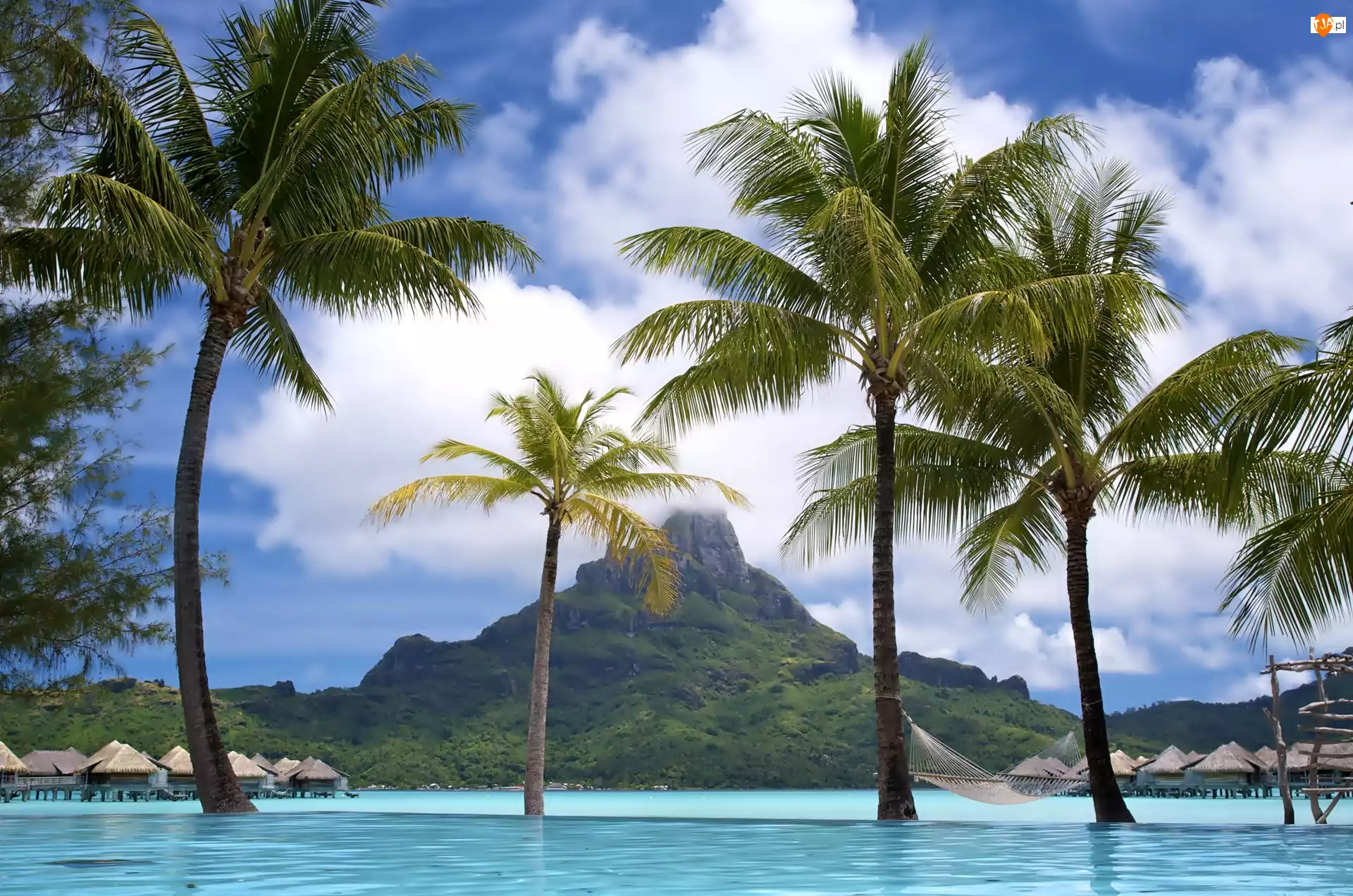 Palmy, Hamak, Góry, Morze, Domki