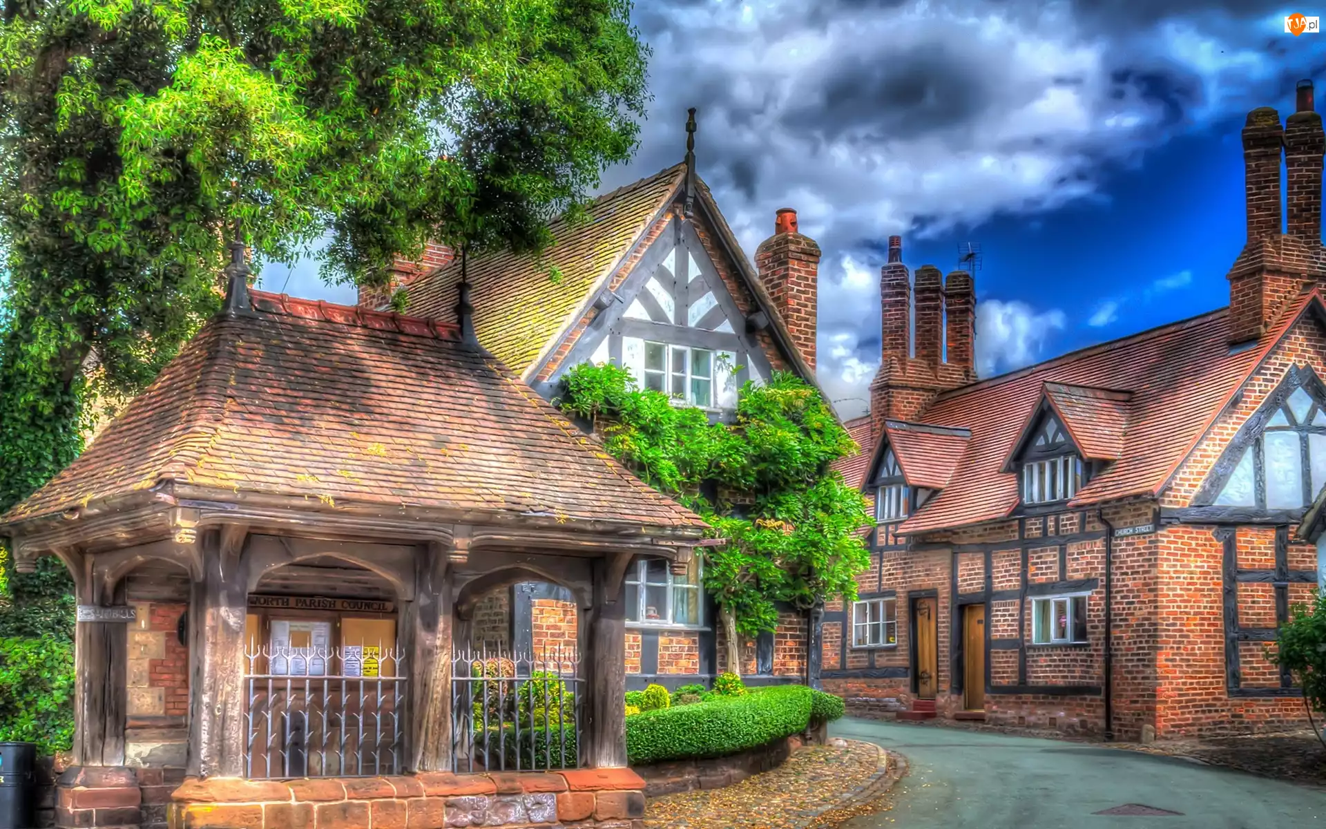 Domy, HDR, Miasteczko, Ulica, Drzewa