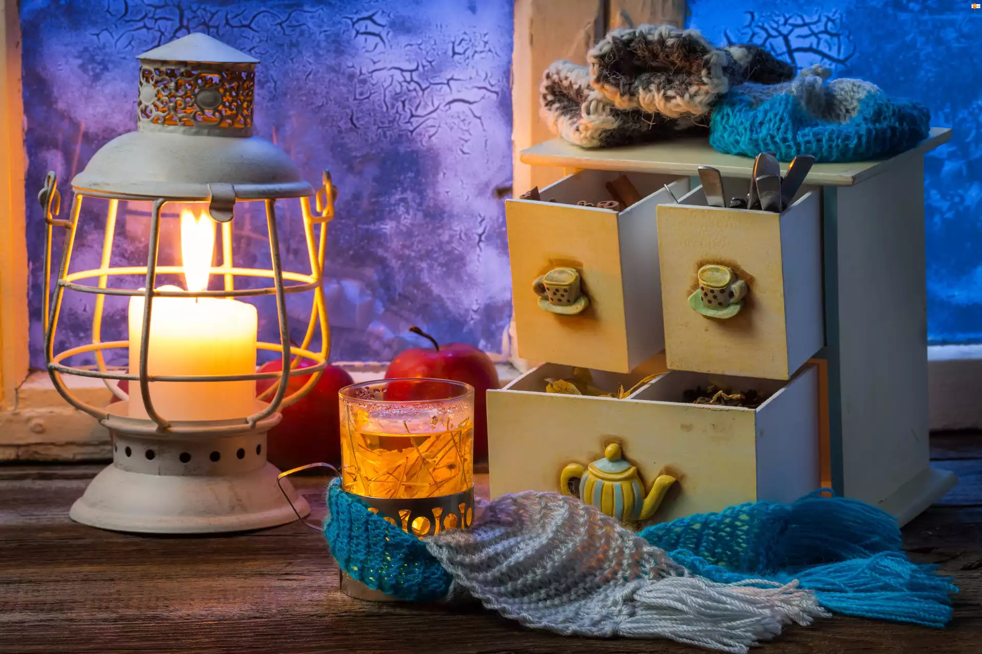 Herbata, Okno, Dekoracja, Świąteczna, Lampa