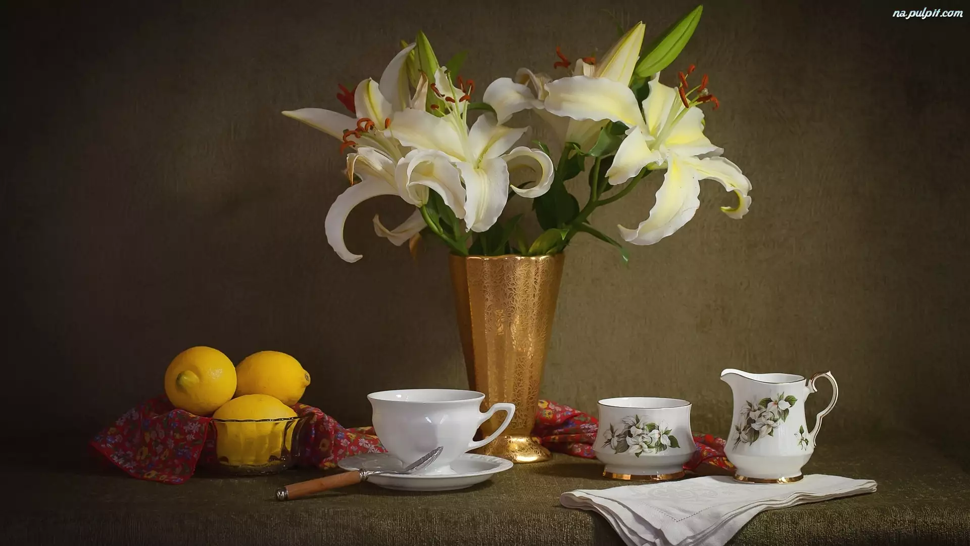 Lilie, Filiżanka, Bukiet, Kompozycja, Cytryny