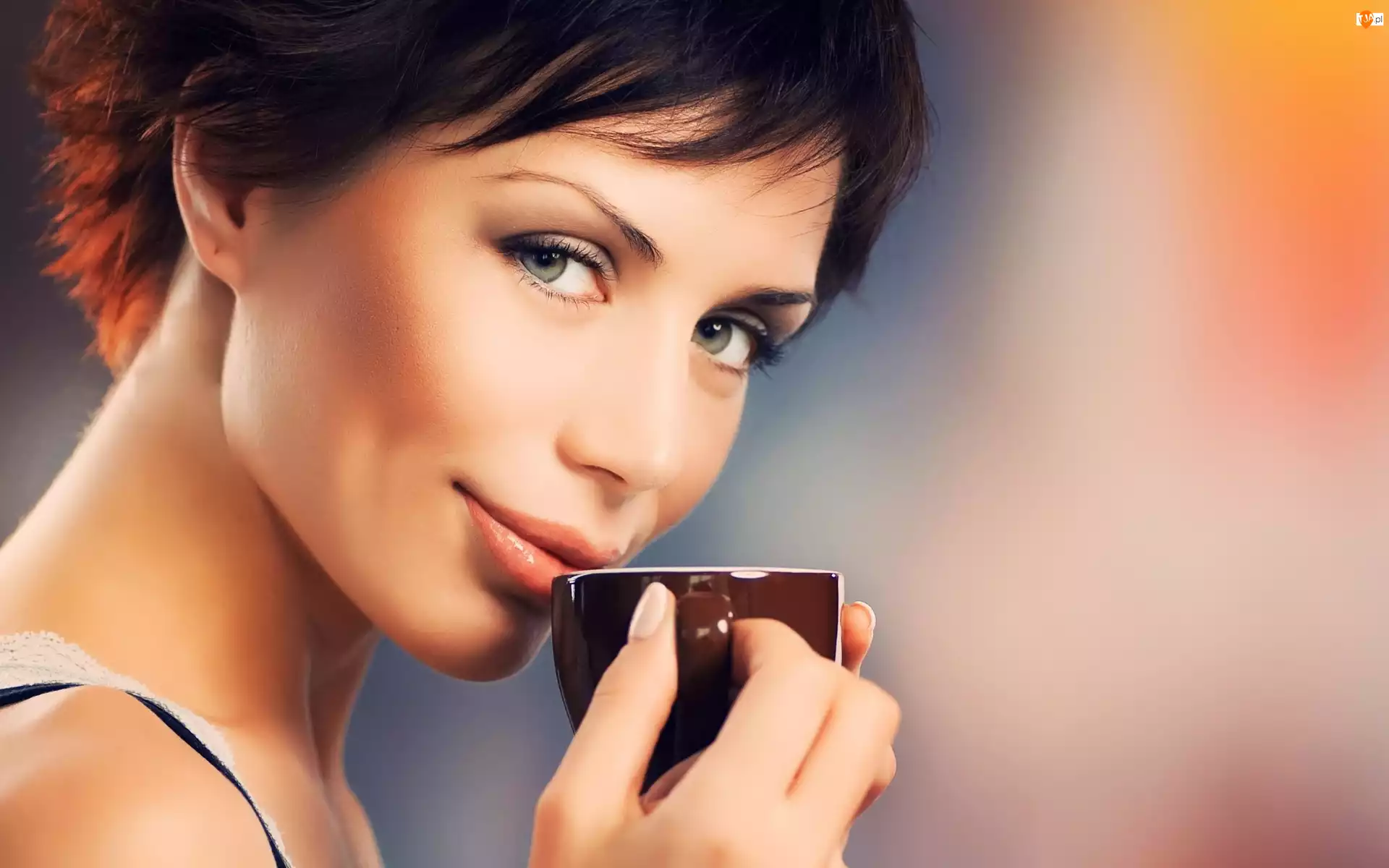 Herbaty, Piękna, Makijaż, Brunetka, Filiżanka