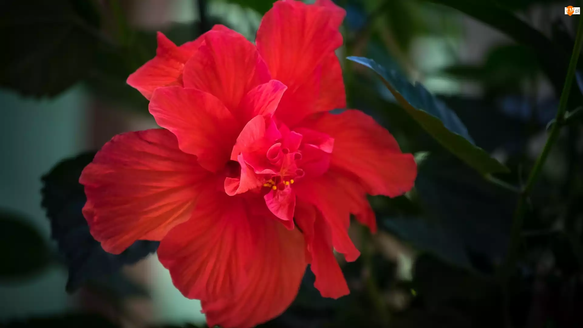 Czerwony, Rozmycie, Hibiskus, Kwiat, Liście