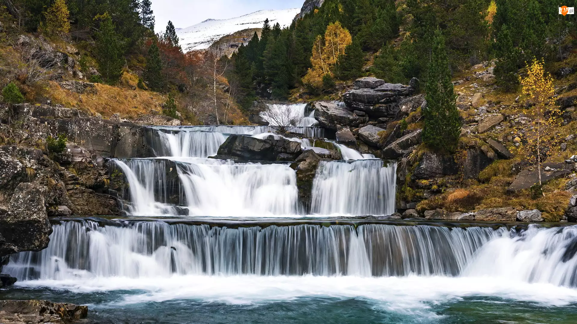 Hiszpania, Wodospad, Park Narodowy Ordesa y Monte Perdido, Arazas Rio, Dolina Ordesy, Drzewa, Las, Kaskada, Rzeka
