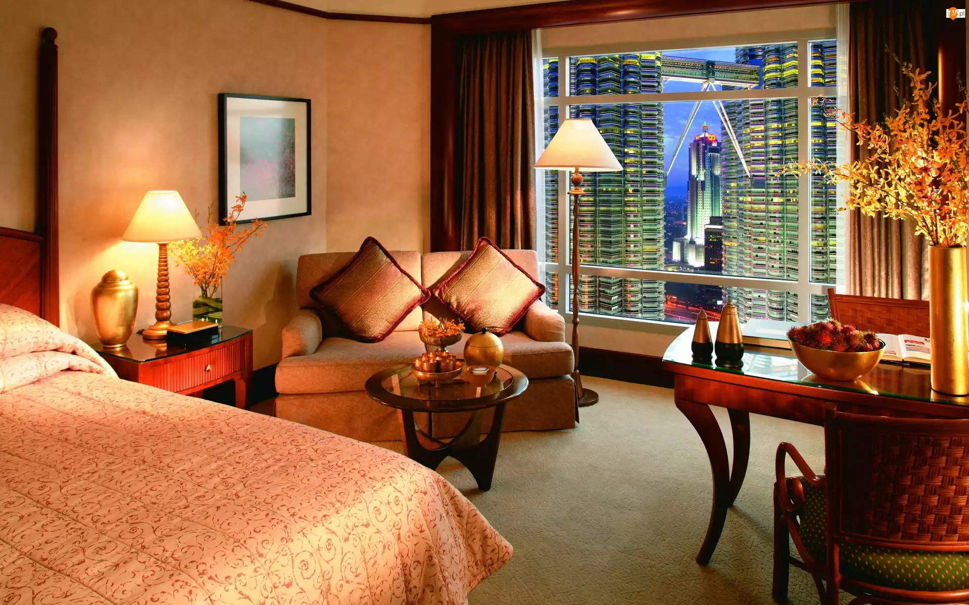 Hotel, Kuala Lumpur, Okno, Na Petronas Towers, Sypialnia, Widok