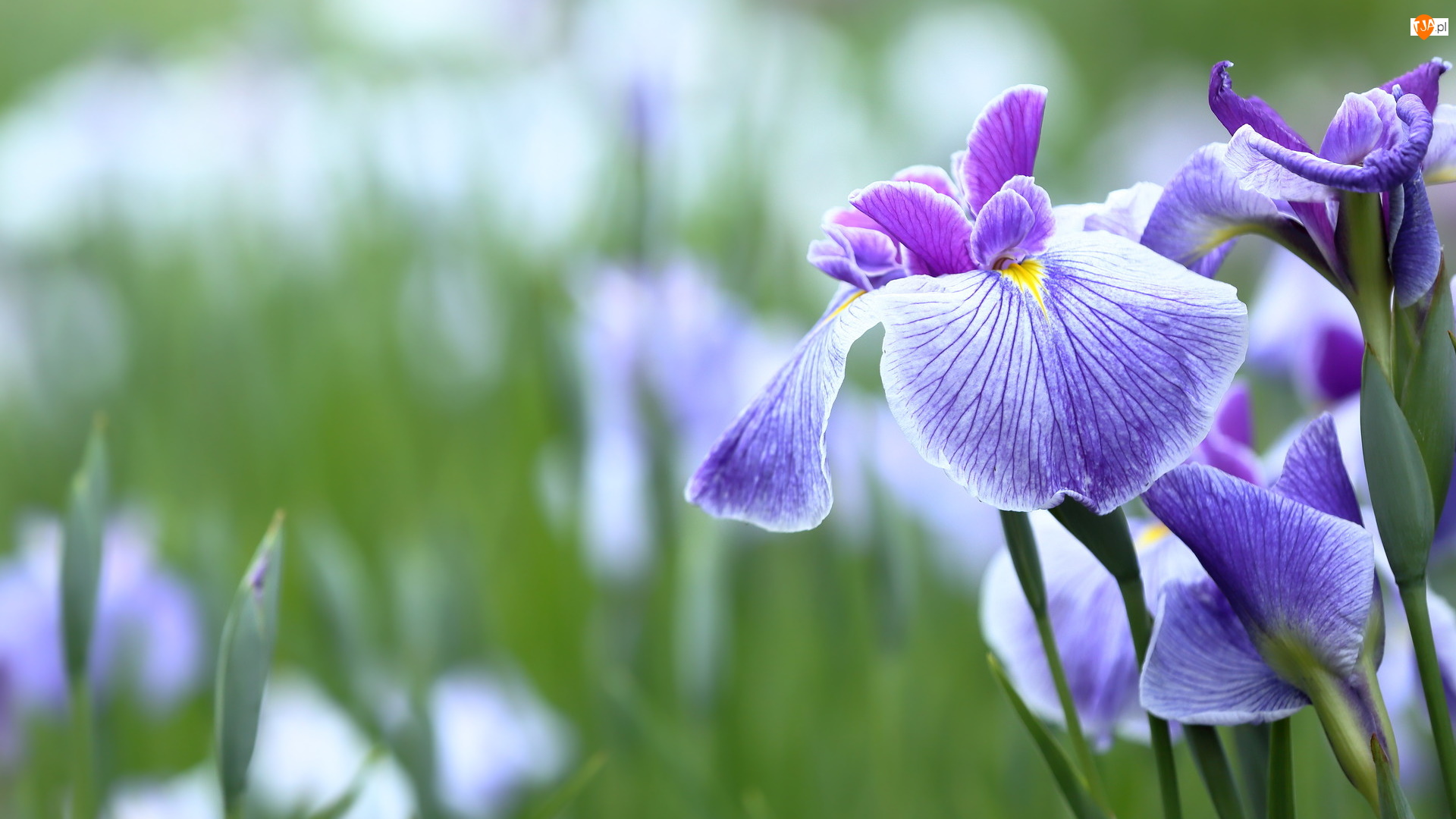 Kwiaty, Fioletowe, Irysy, Zbliżenie