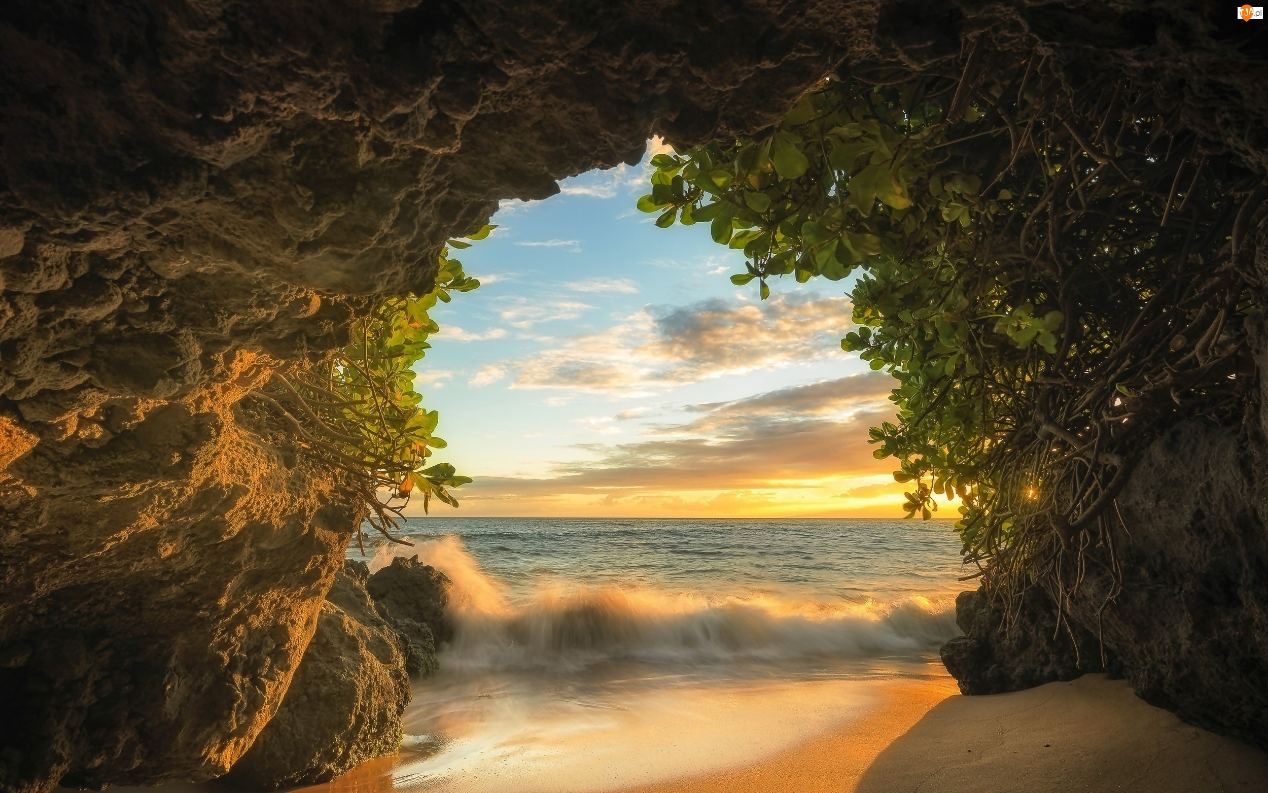 Fale, Islandia, Morze, Jaskinia, Plaża