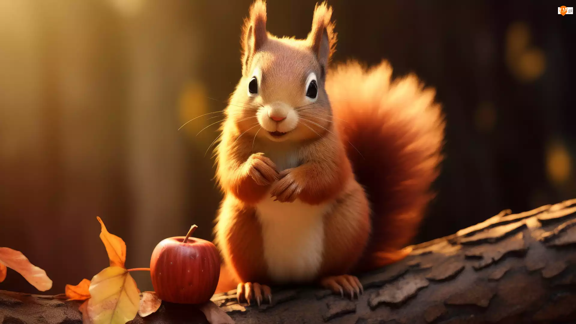 Jabłko, Światło, Konar, Wiewiórka, Liście