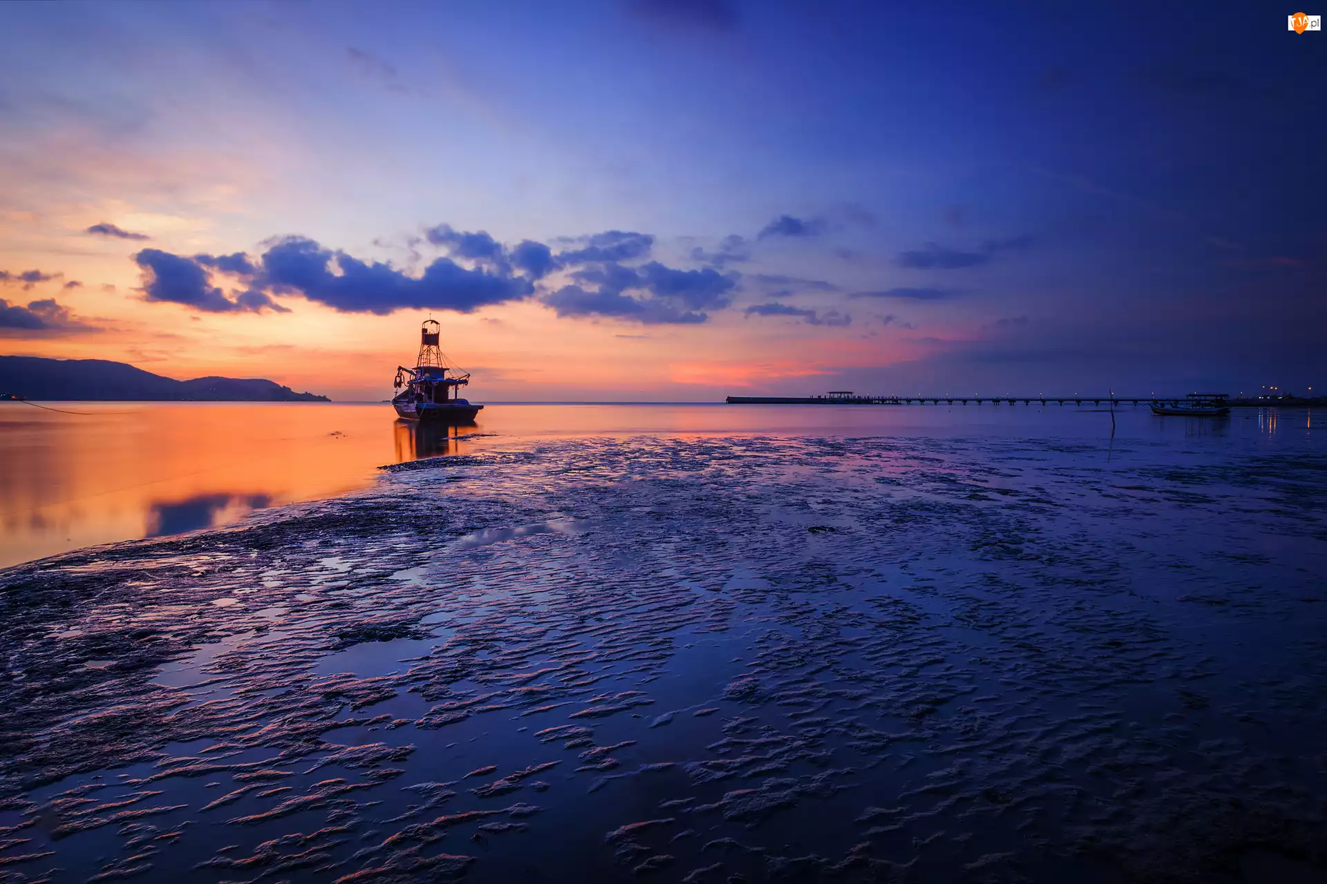 Kuter, Zachód słońca, Morze, Chmury