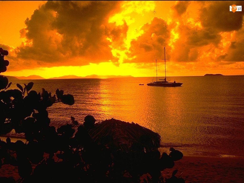Jacht, Zachód Słońca, Morze