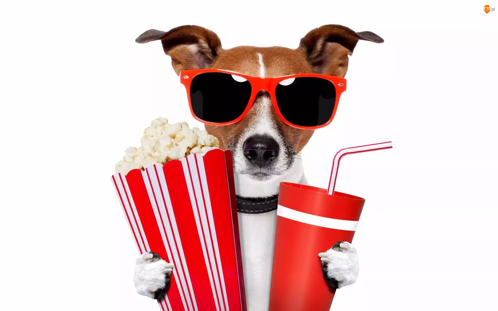 Okulary, Popcorn, Jack Russell terrier, Pies, Napój