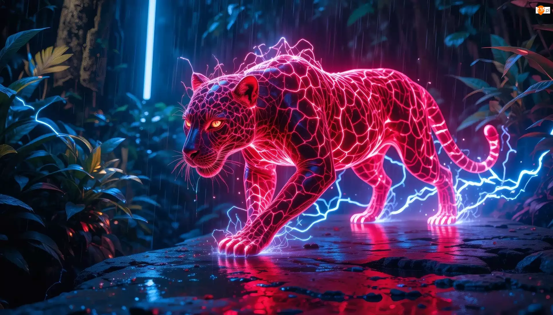 Jaguar, Oświetlenie, Różowy, Elektryczny, Drapieżne, Grafika, Stąpanie, Zwierzę, Kolor, Dzikie, Komputerowa