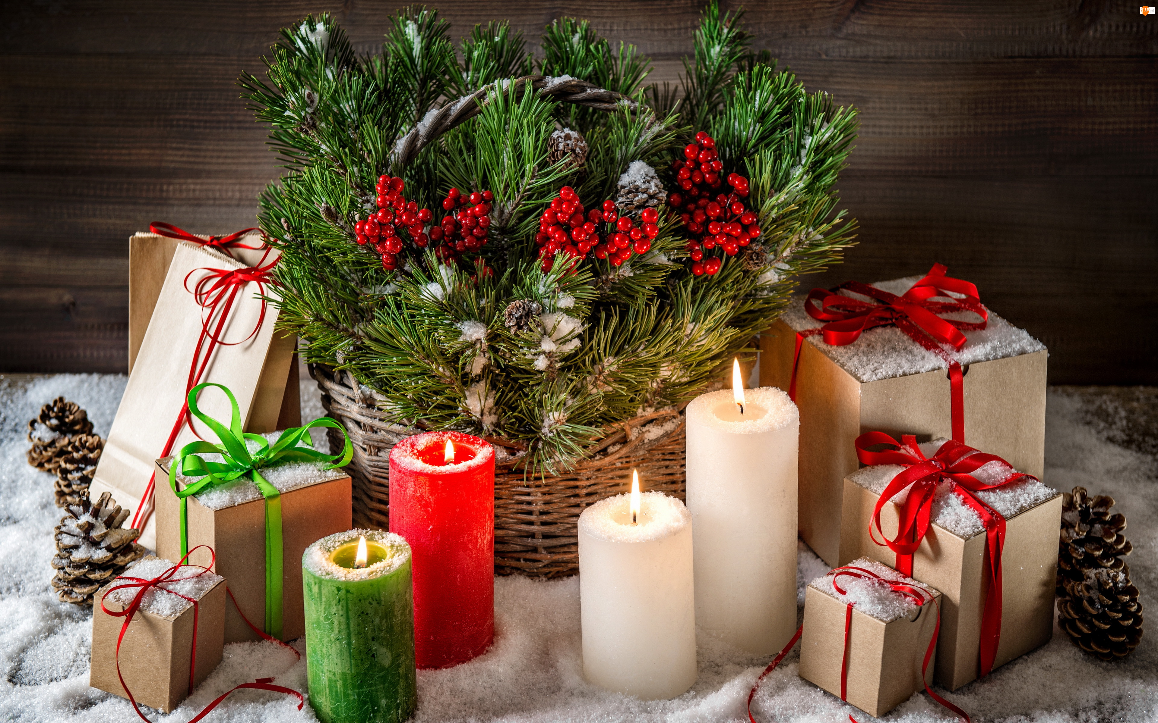Jarzębina, Świece, Kompozycja, Prezenty, Świąteczna, Koszyk