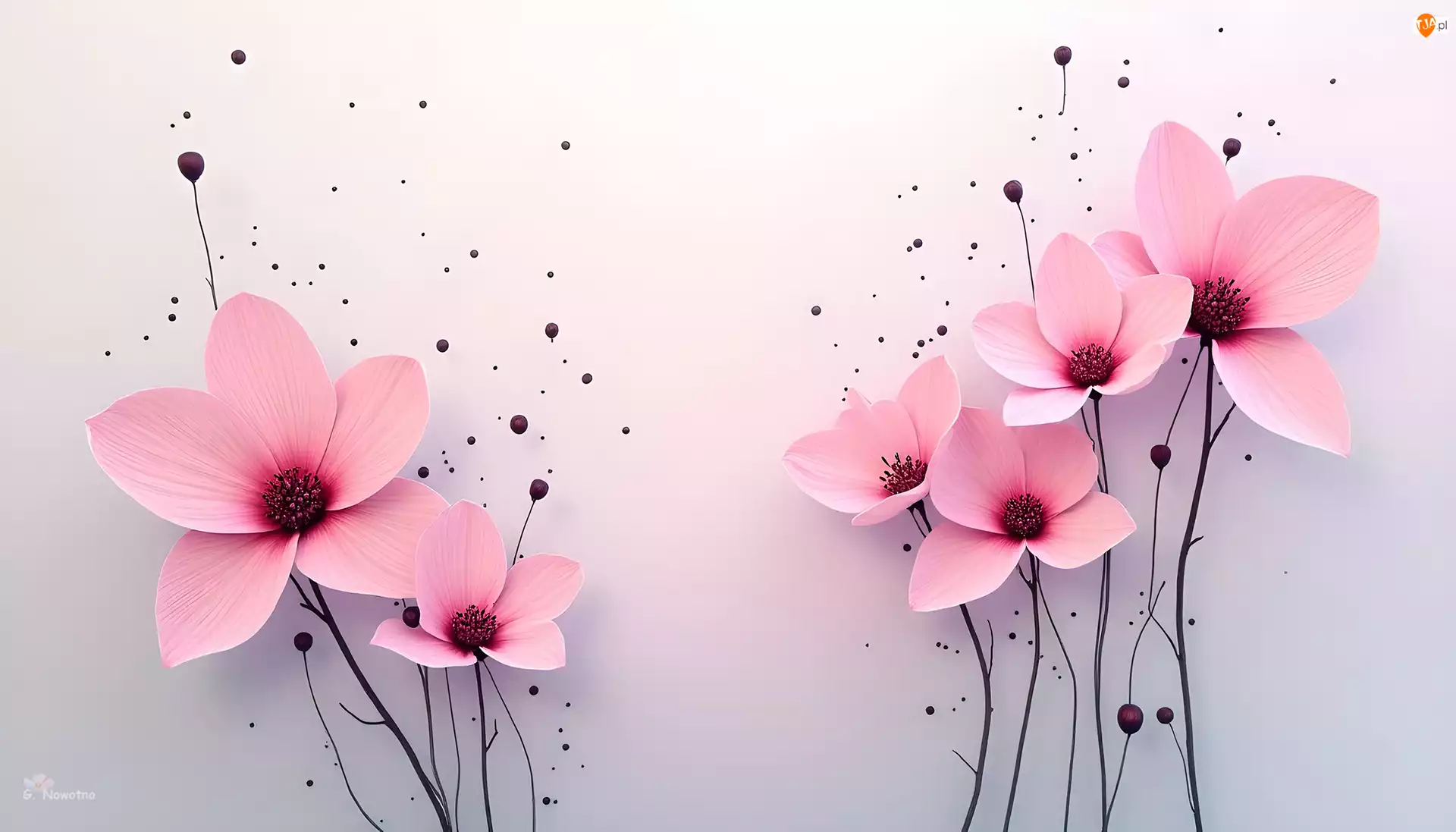 Jasne, Grafika, Kwiaty, Różowe, Tło