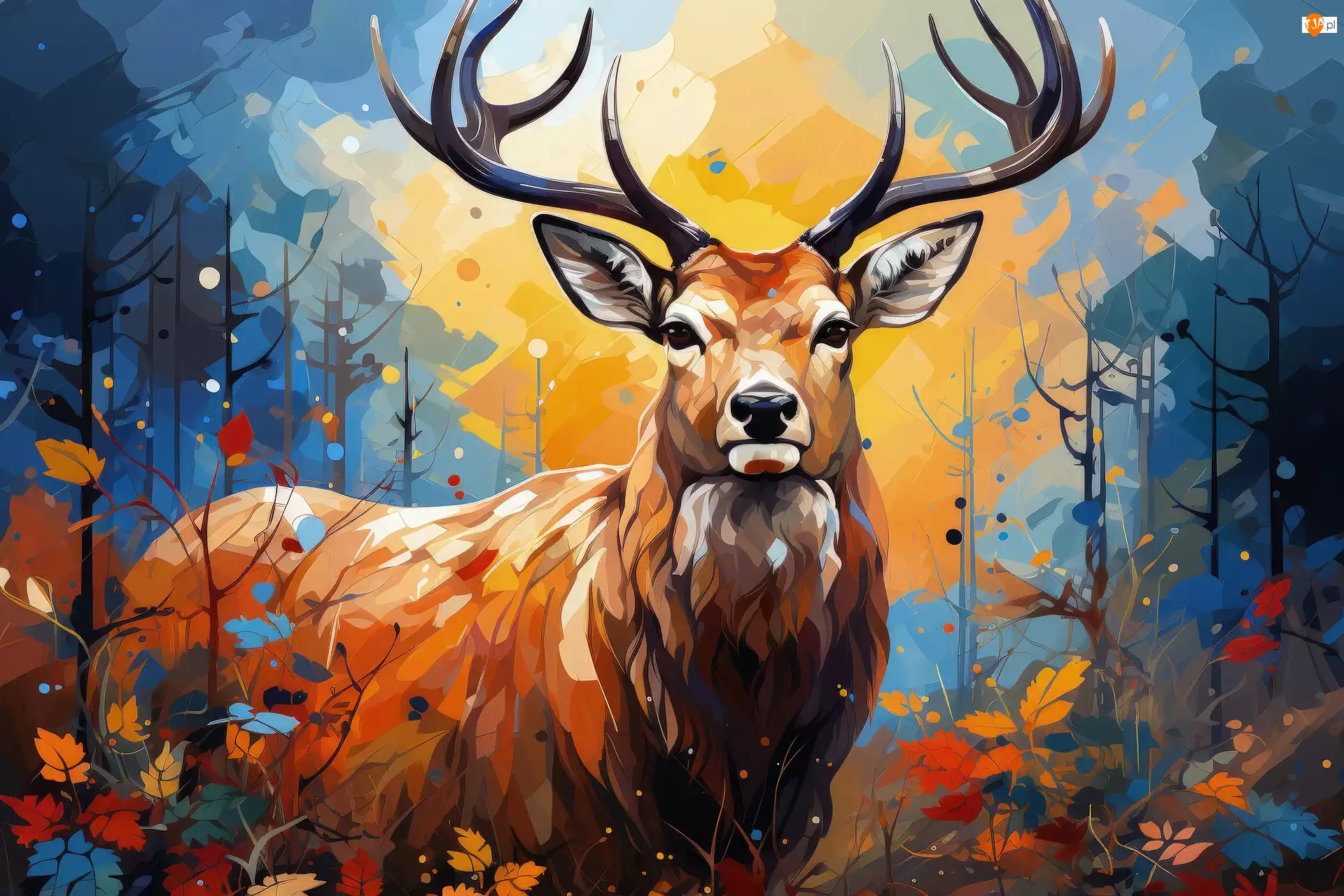 Jeleń w kolorowym lesie