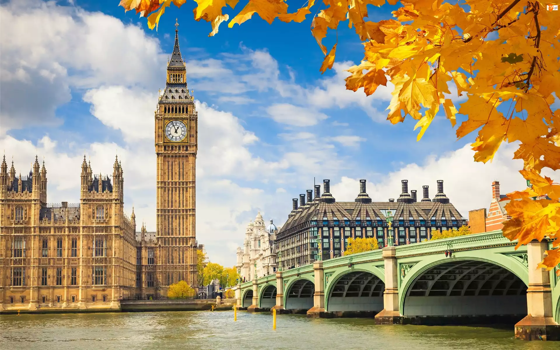 Jesień, Big Ben, Tamiza, Londyn, Most