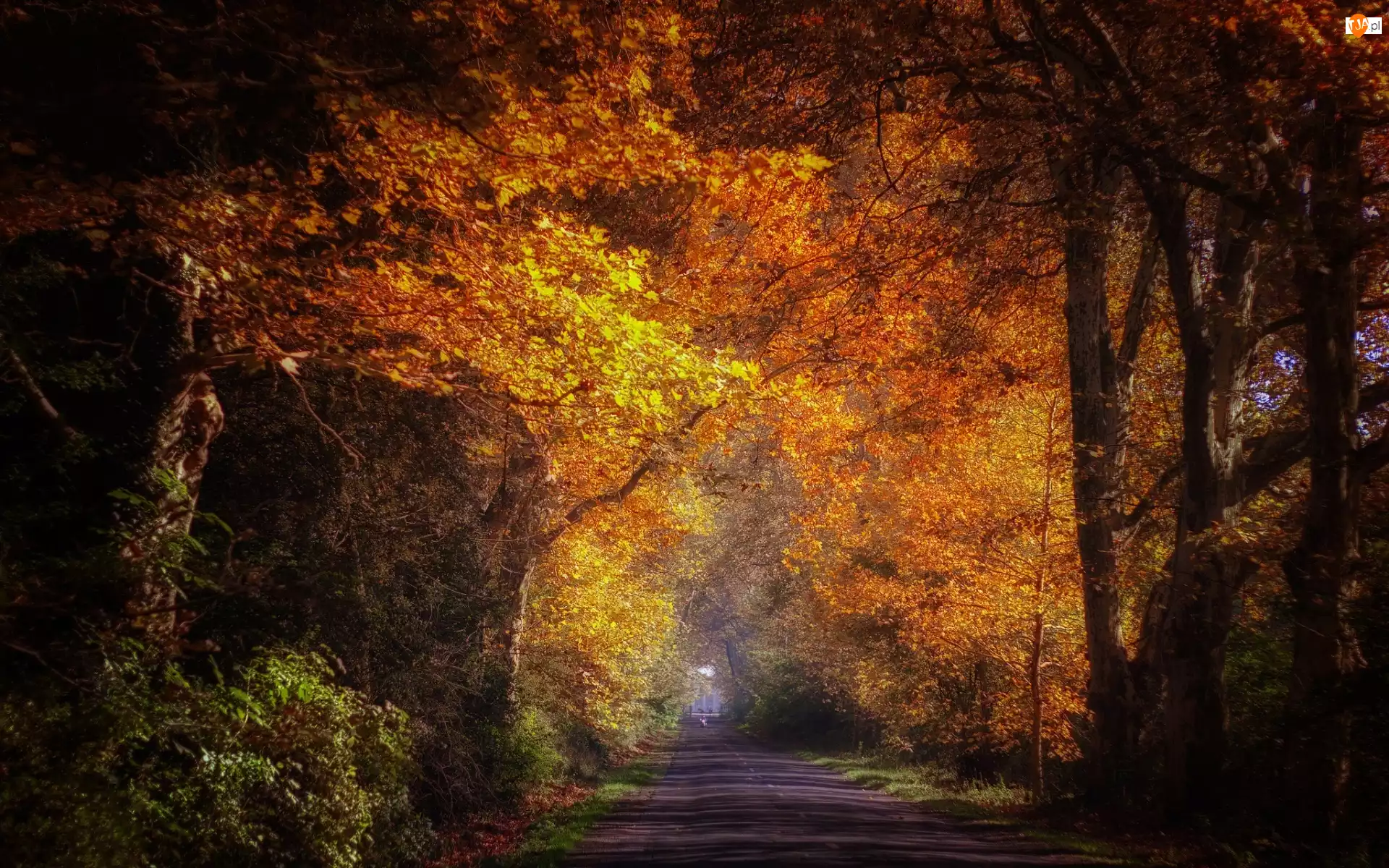 Jesień, Droga, Przebijające, Drzewa, Światło