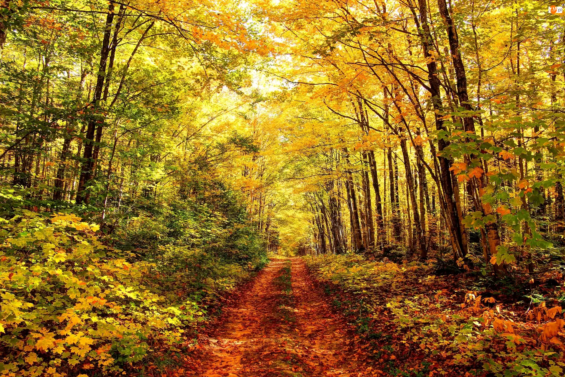 Drzewa, Jesień, Las, Droga