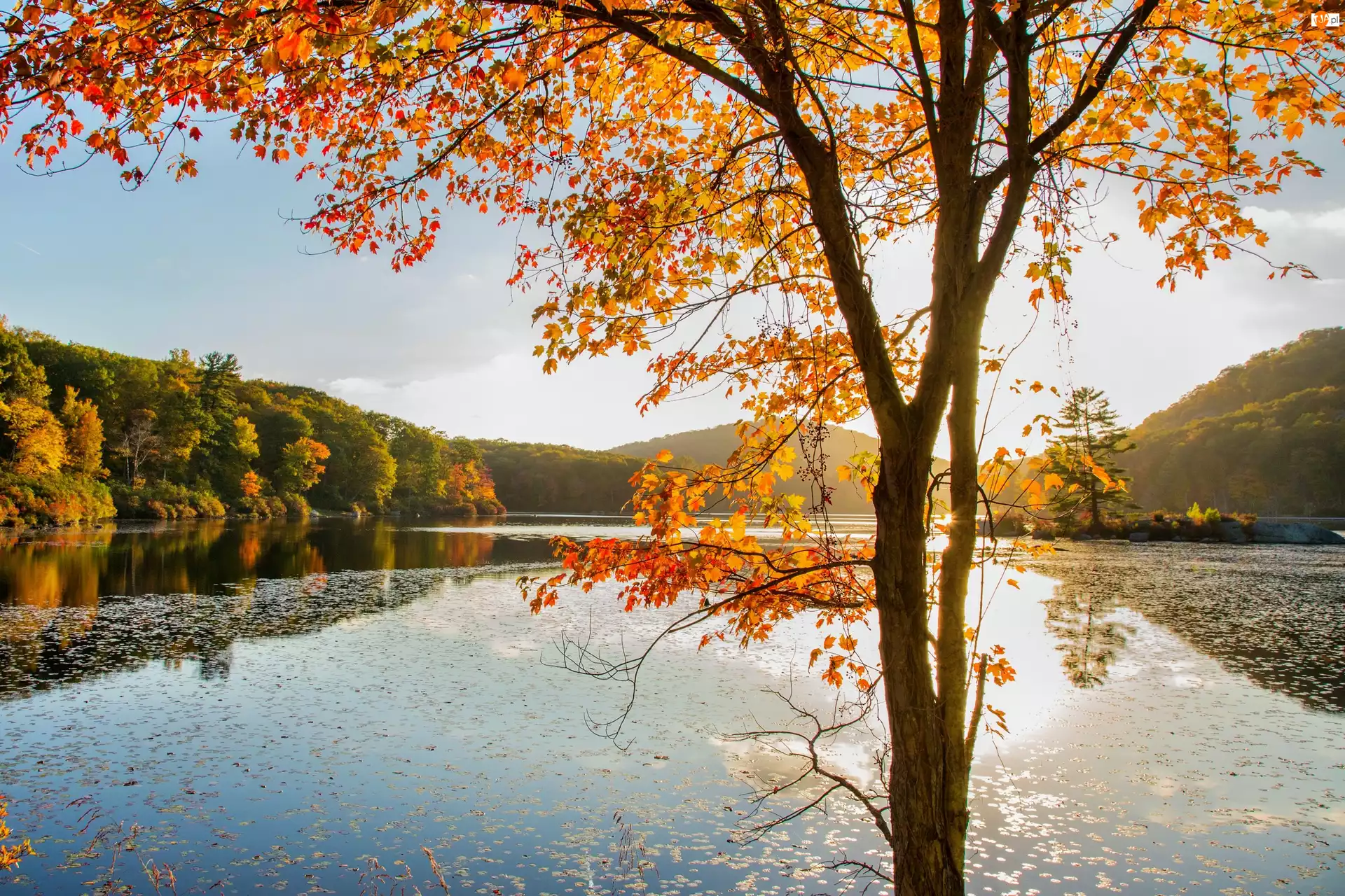 Jesień, Drzewo, Jezioro, Lasy