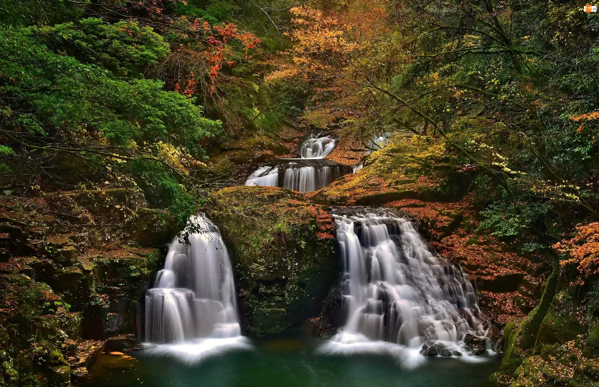 Jesień, Góra, Wodospad, Las, Kaskada