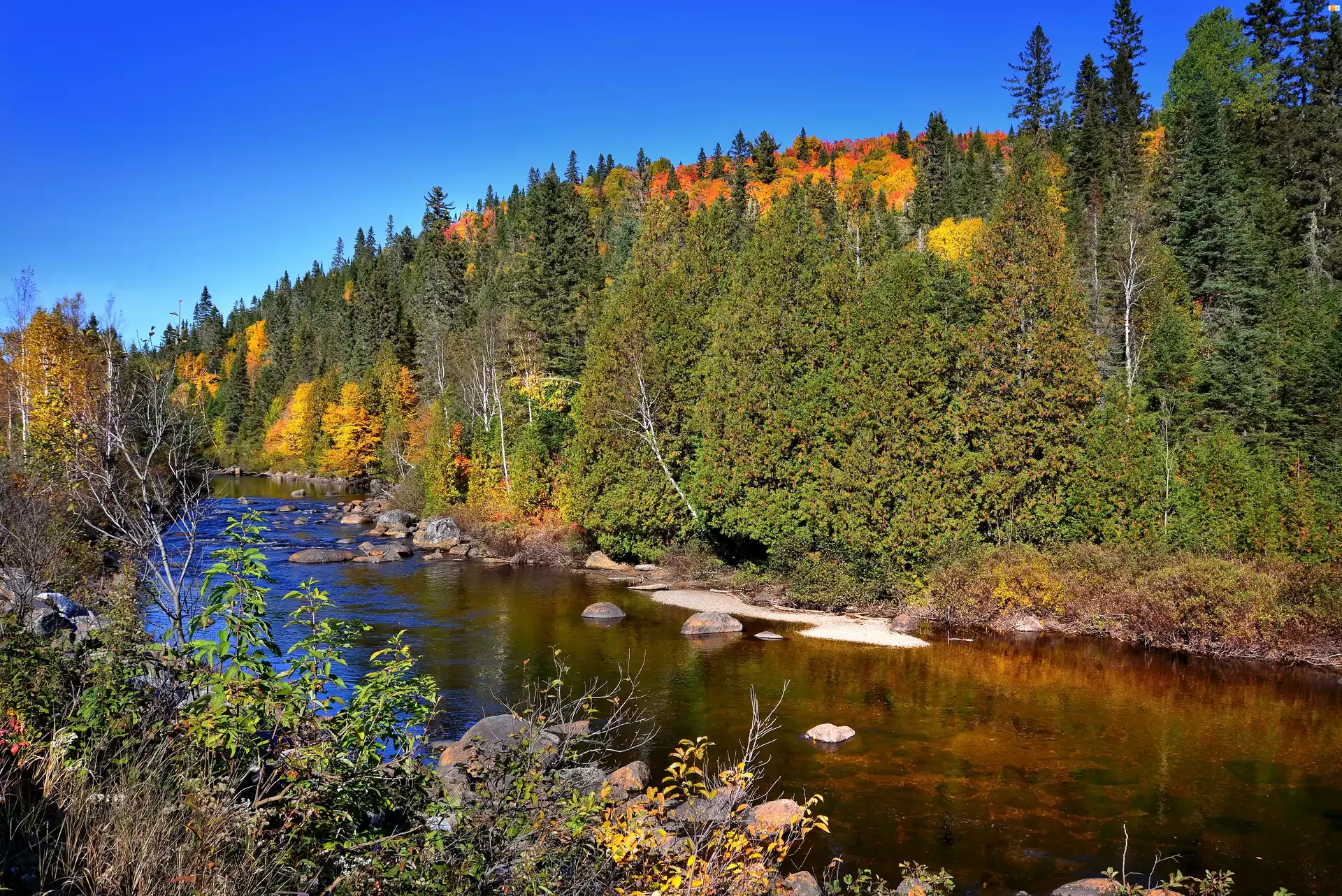 Rzeka, Kamienie, Las, Jesień