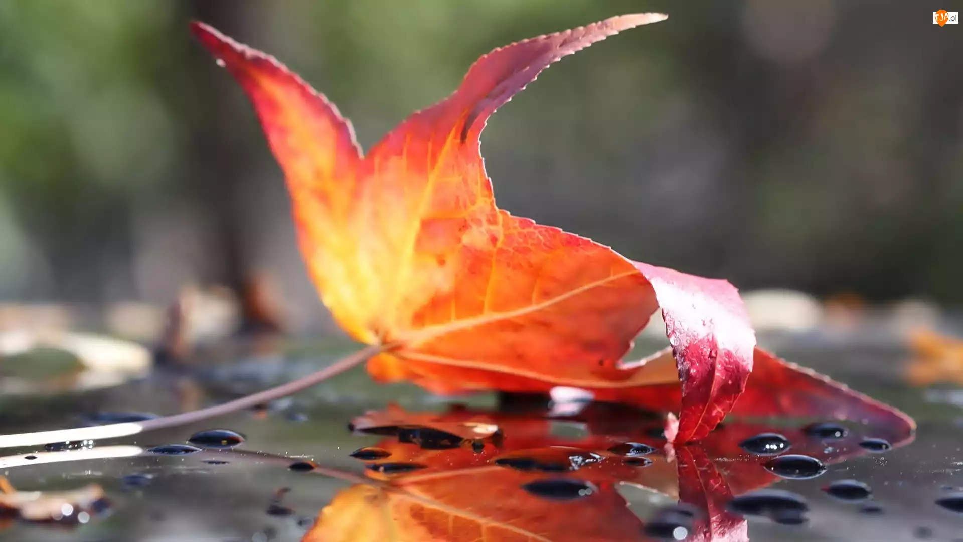 Jesień, Krople, Liść, Deszcz