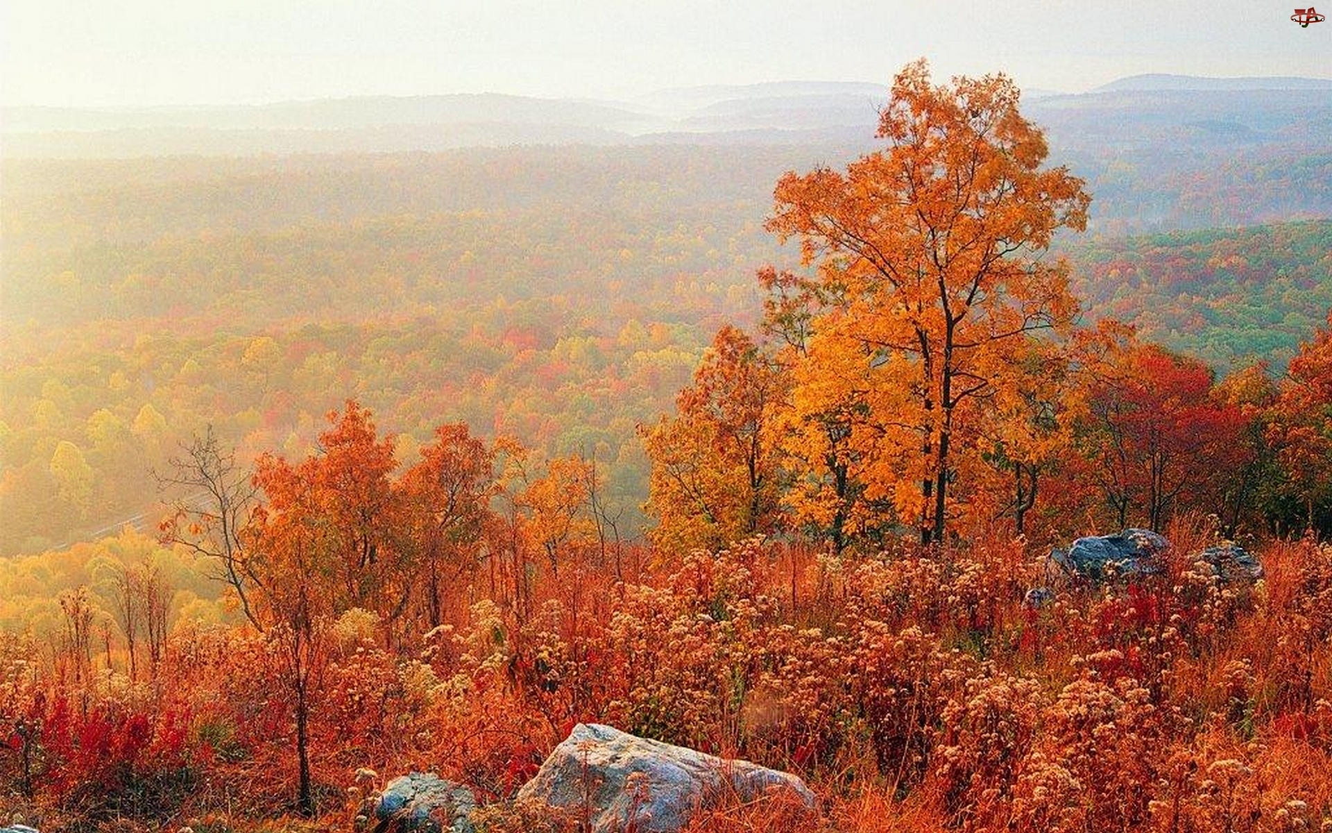Jesień, Lasy, Drzewa, Kolorowe, Kamienie