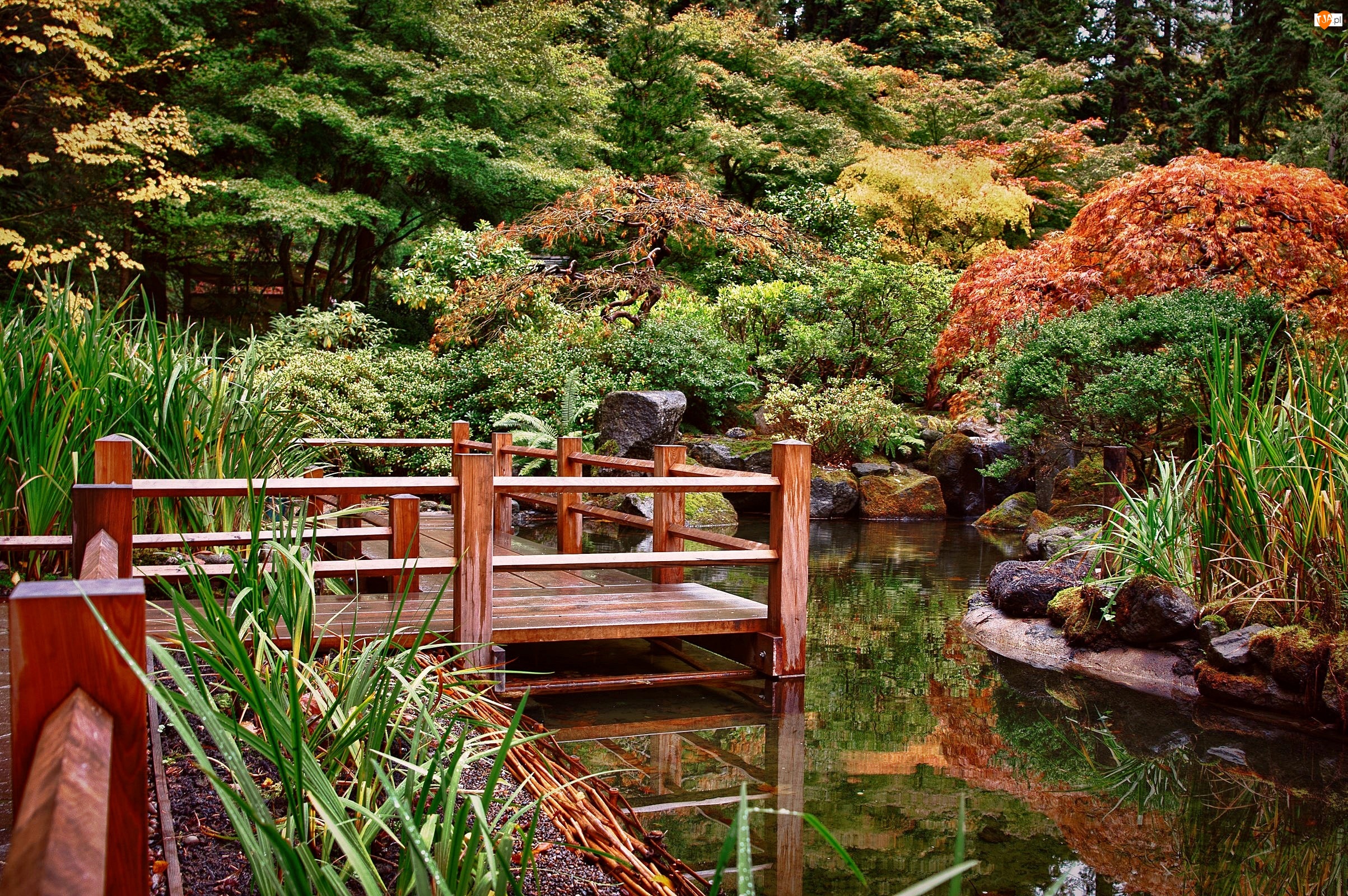 Jesień, Park, Ogród, Japoński, Sadzawka
