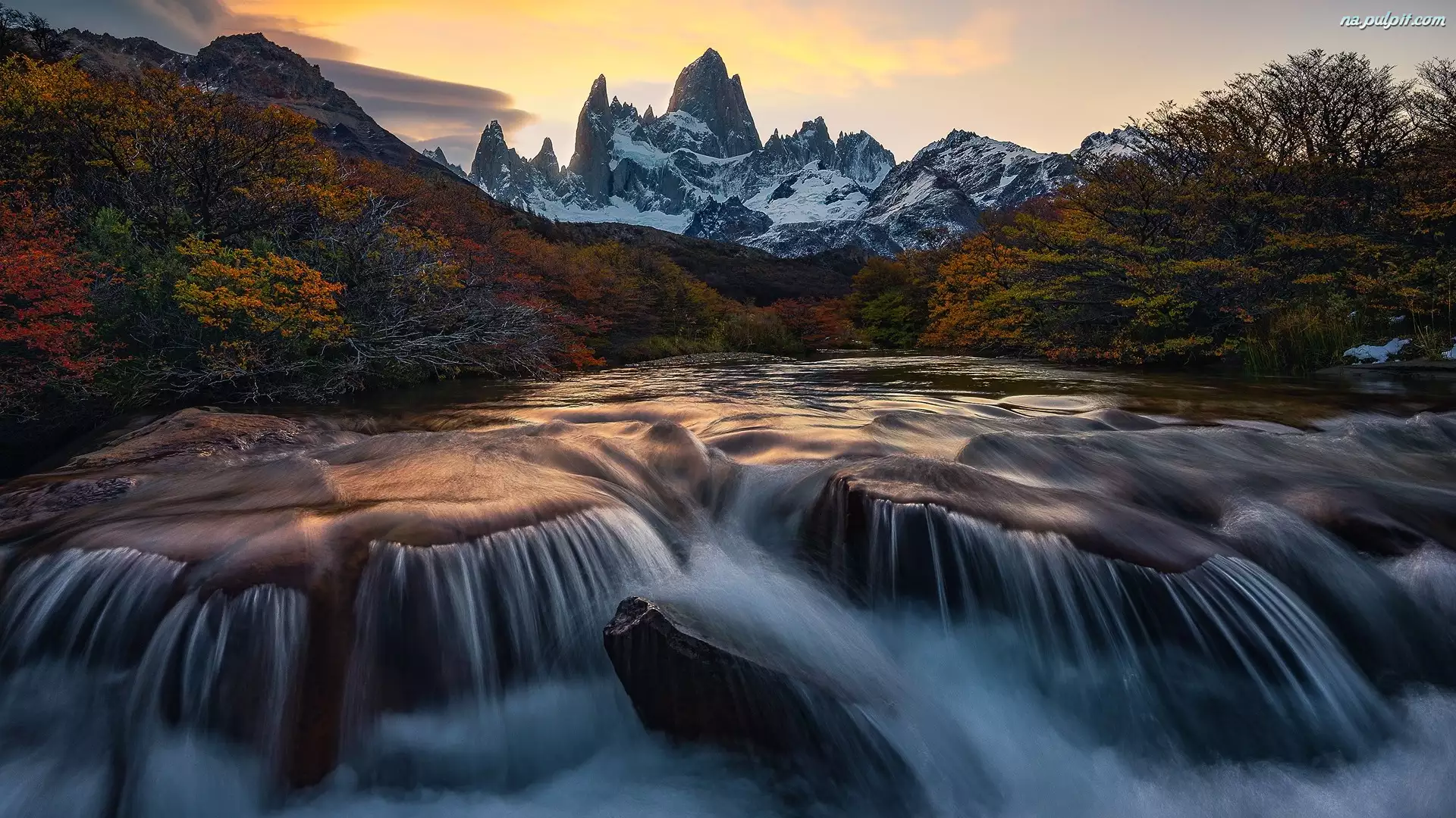 Jesień, Patagonia, Roślinność, Rzeka, Kolorowa, Góry, Szczyt, Argentyna, Fitz Roy