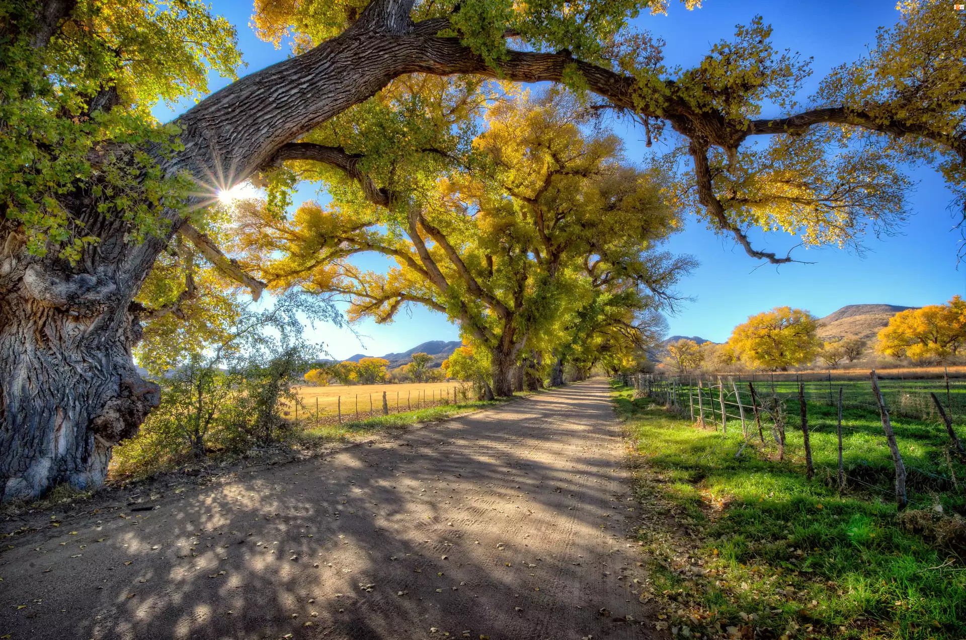 Jesień, Słońce, Droga, Wzgórz