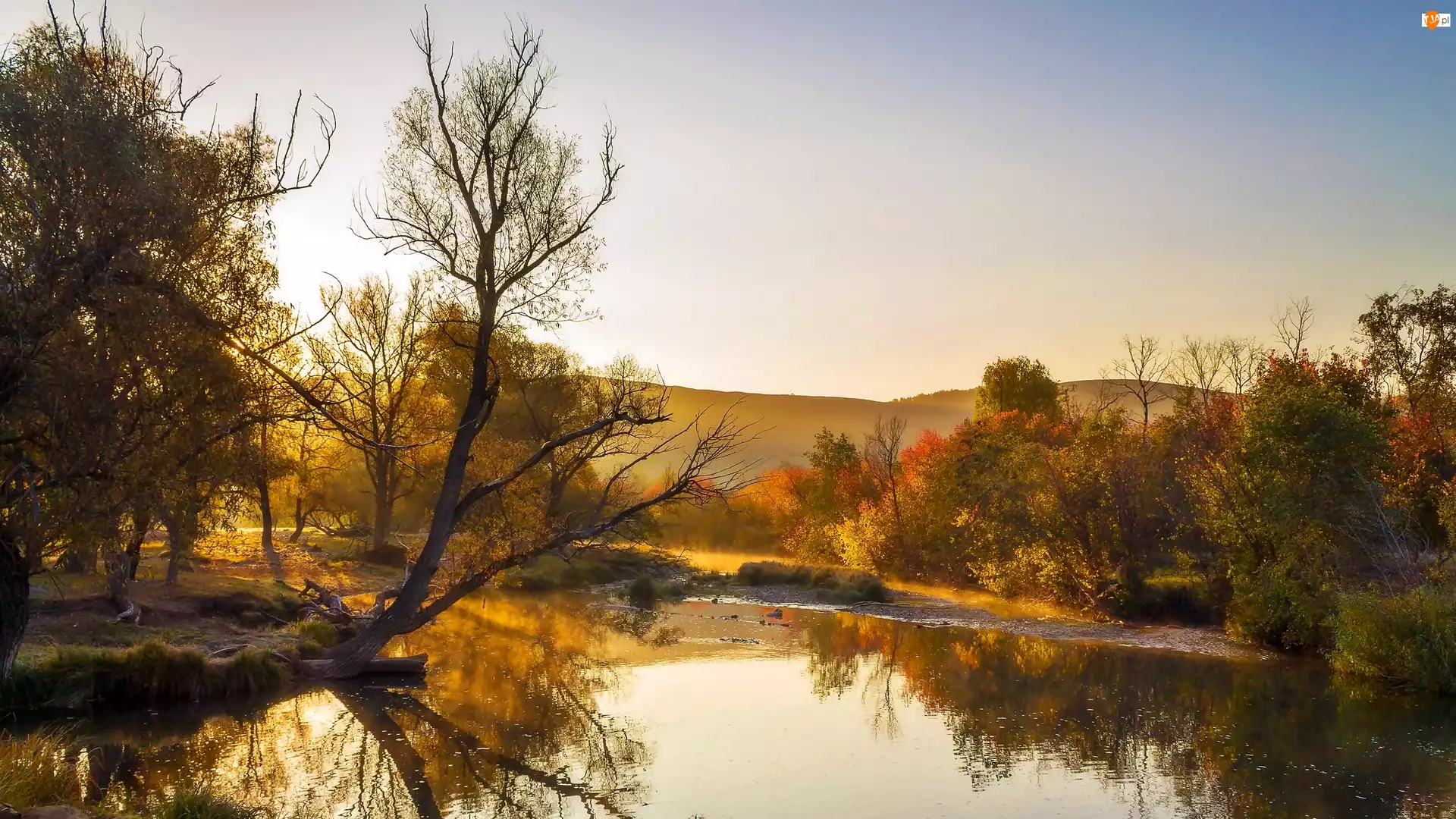Jesień, Wzgórza, Rzeka, Las