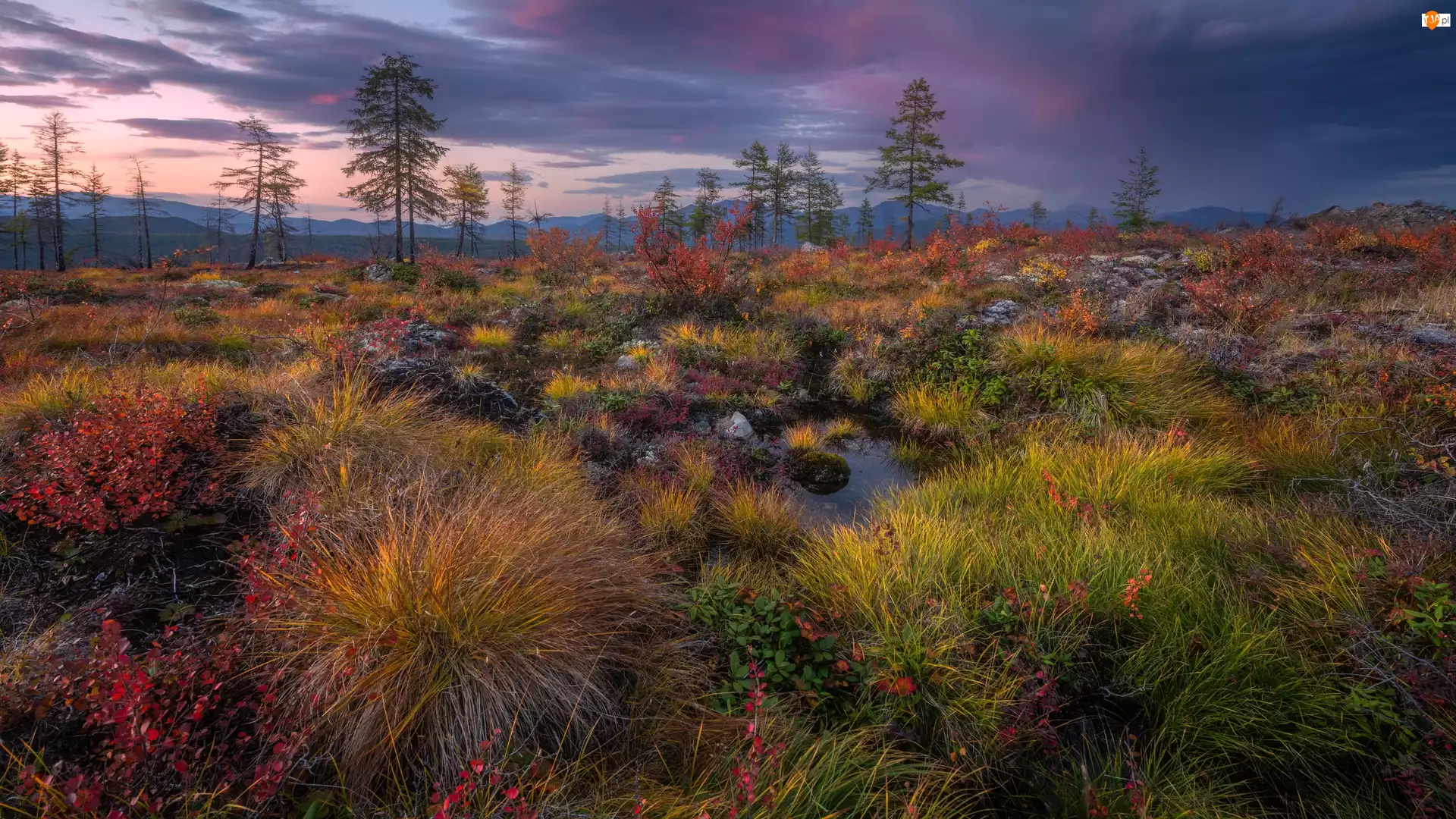 Kołyma, Rosja, Drzewa, Roślinność, Jesień, Trawa
