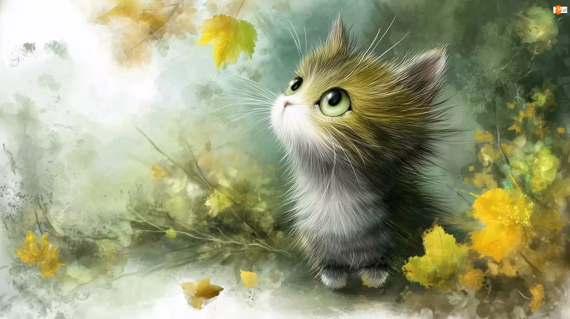Jesienne, Grafika AI, Kot, Kotek, Liście