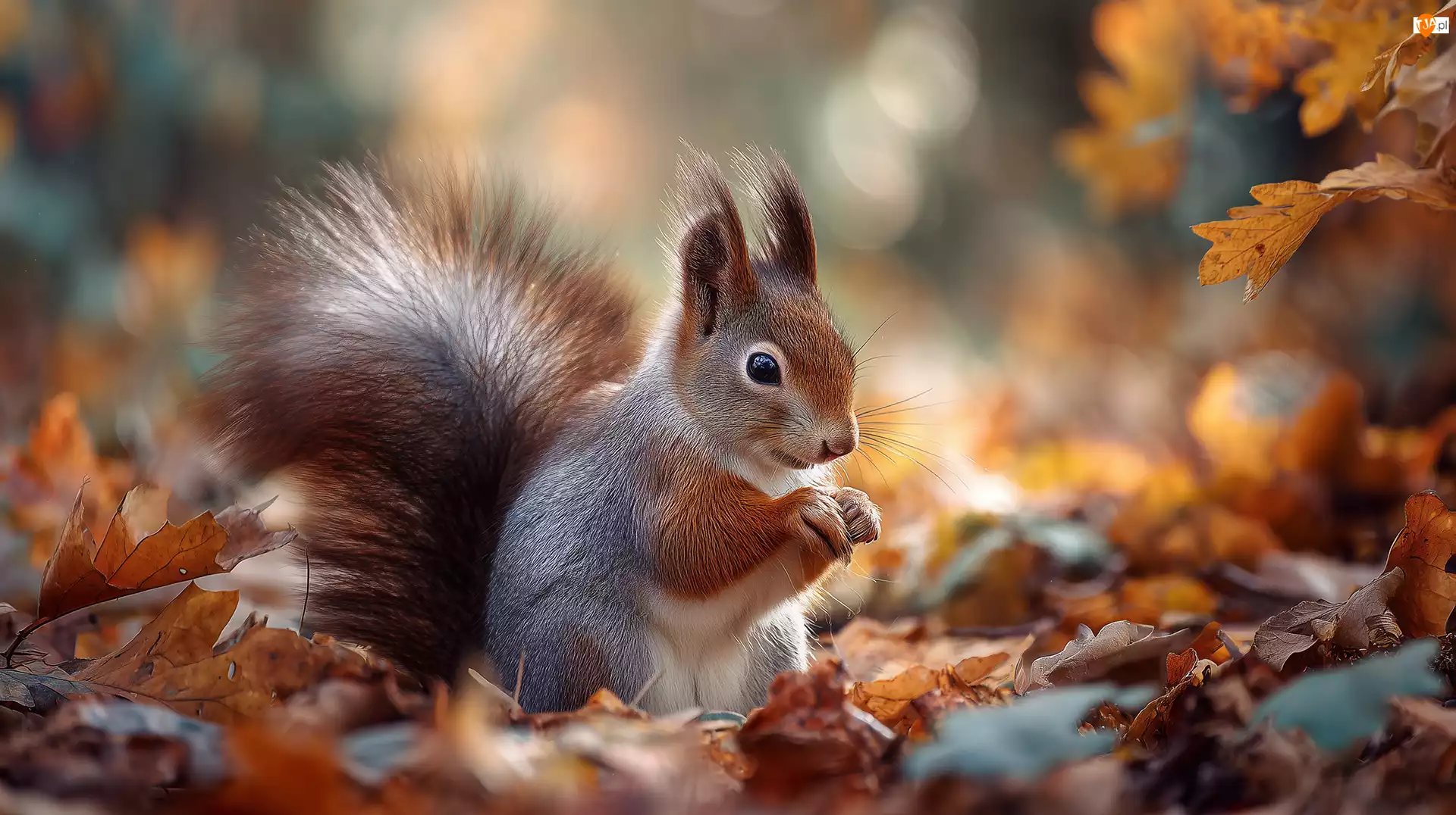 Jesienne, Grafika AI, Suche, Wiewiórka, Liście