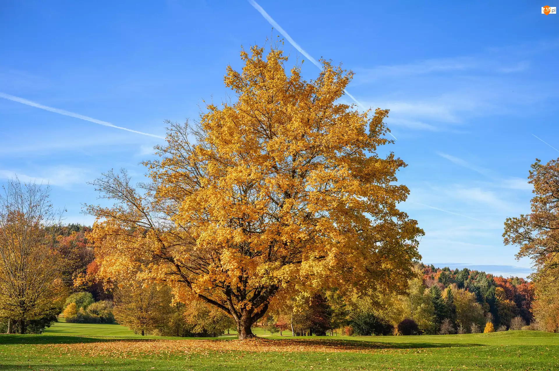 Jesienny krajobraz z klonemna łące