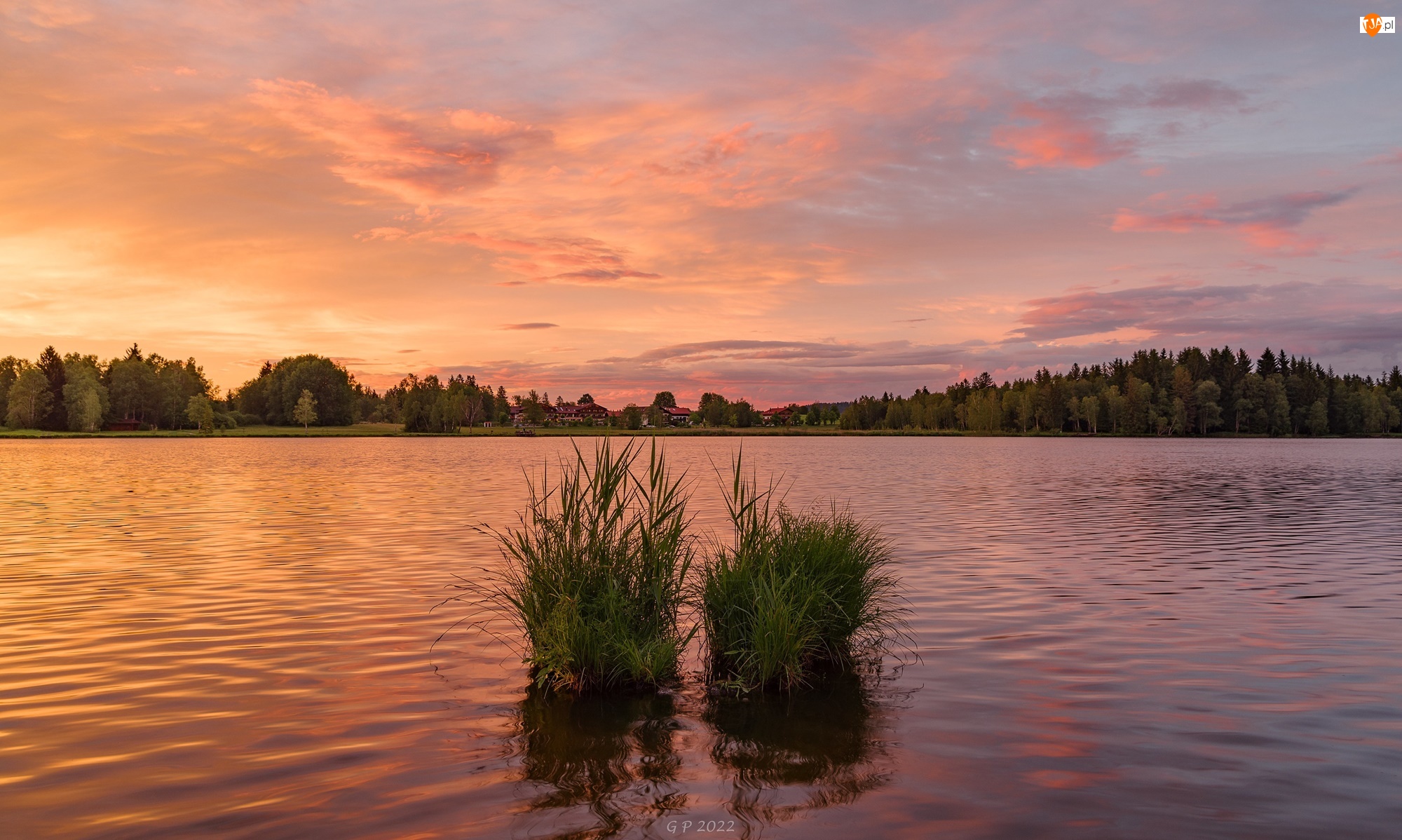 Tagi: Jezioro Domy Trawa Kępki Drzewa