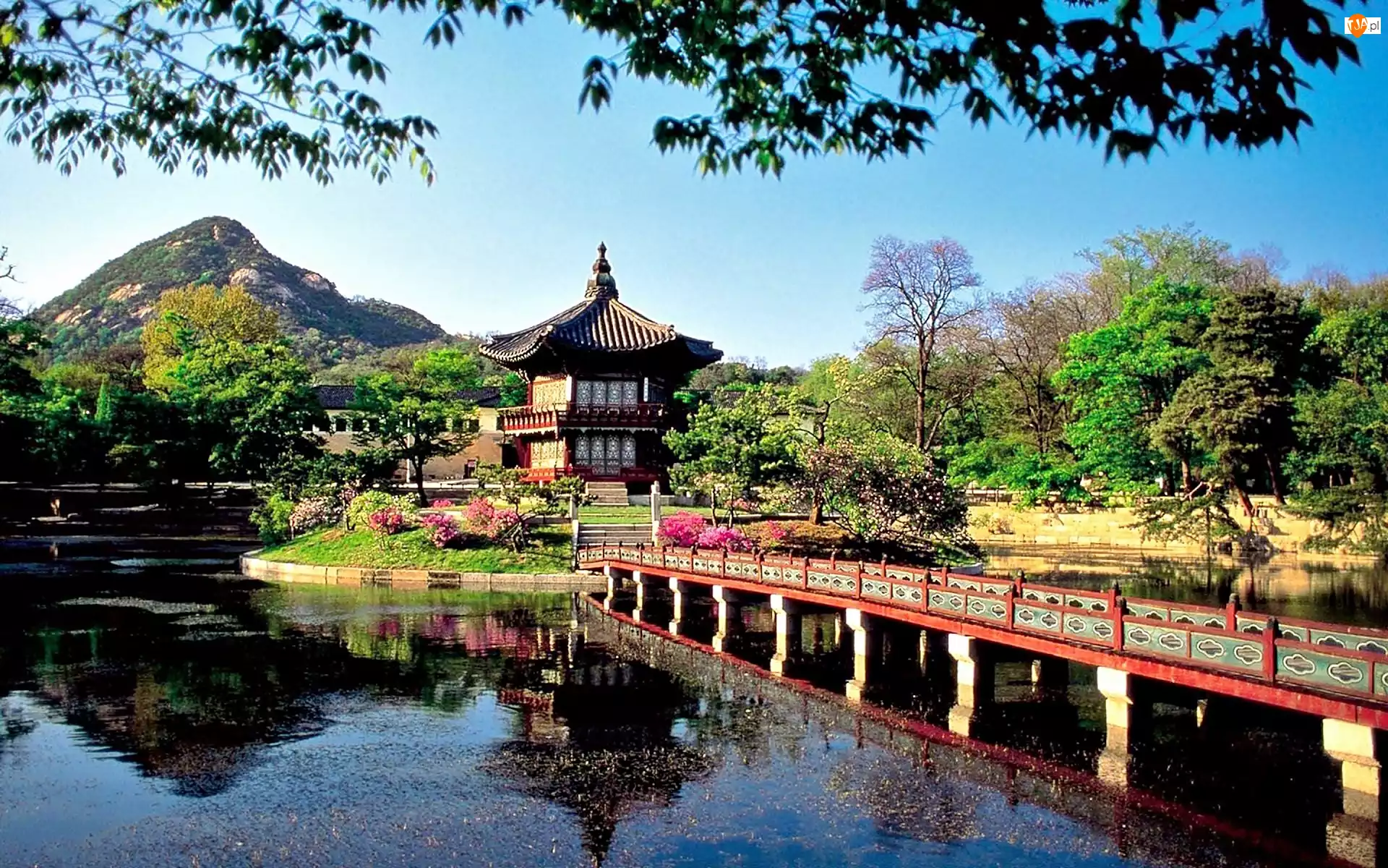 Jezioro, Jong, Changwon, Miasto, Most, Pawilon, Pa