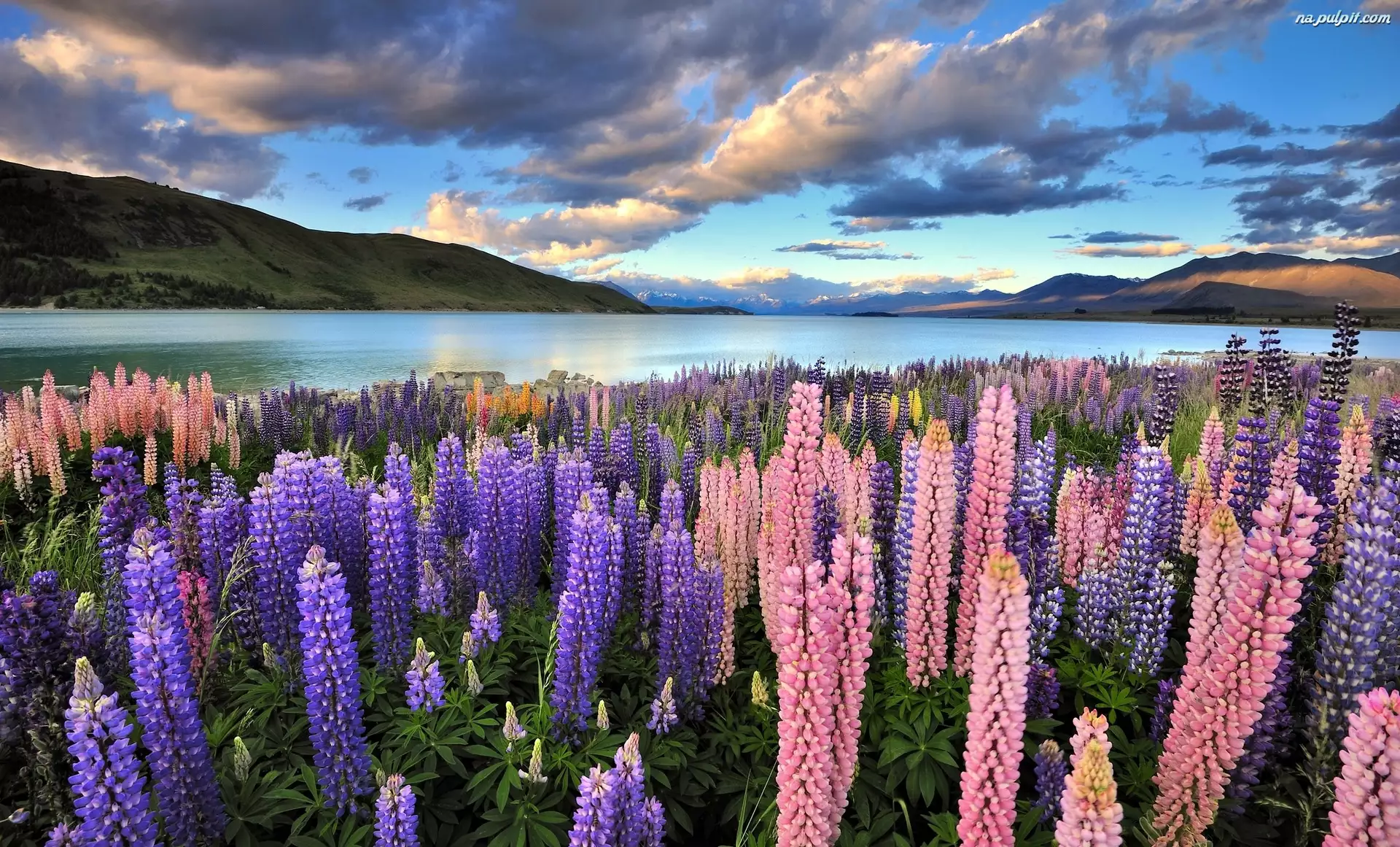 Góry, Łubin, Jezioro Tekapo, Nowa Zelandia, Łąka