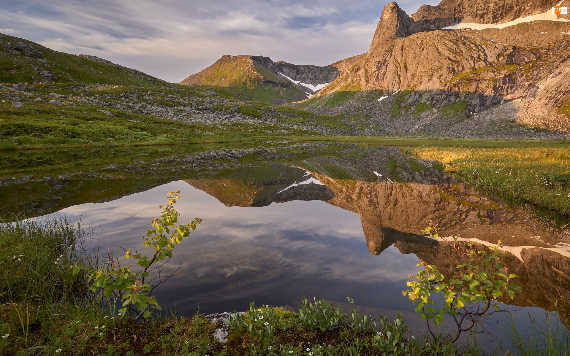 Jezioro, Odbicie, Małe, Góry, Rośliny