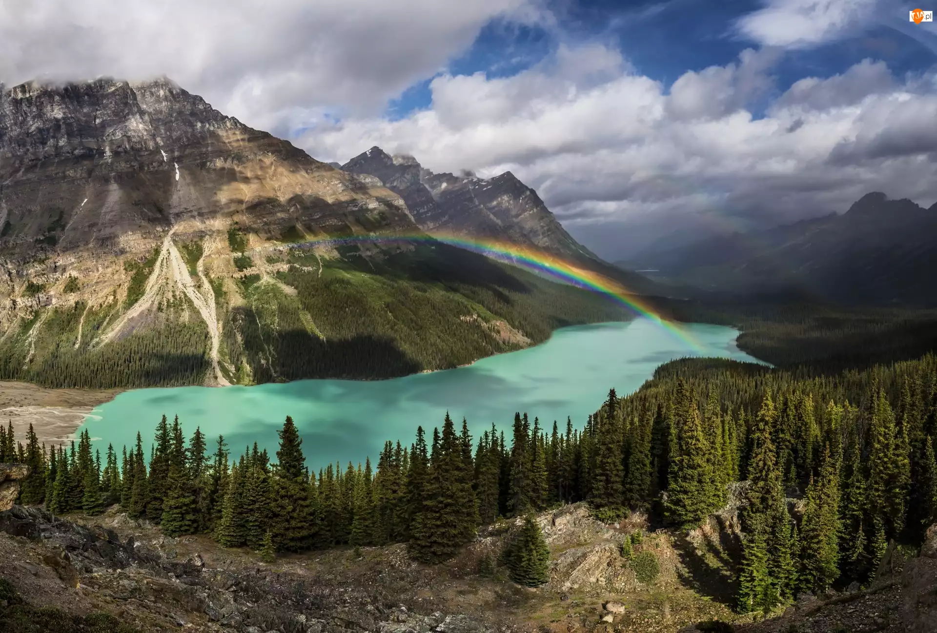 Jezioro Peyto Lake, Góry, Prowincja Alberta, Tęcza, Park Narodowy Banff, Kanada