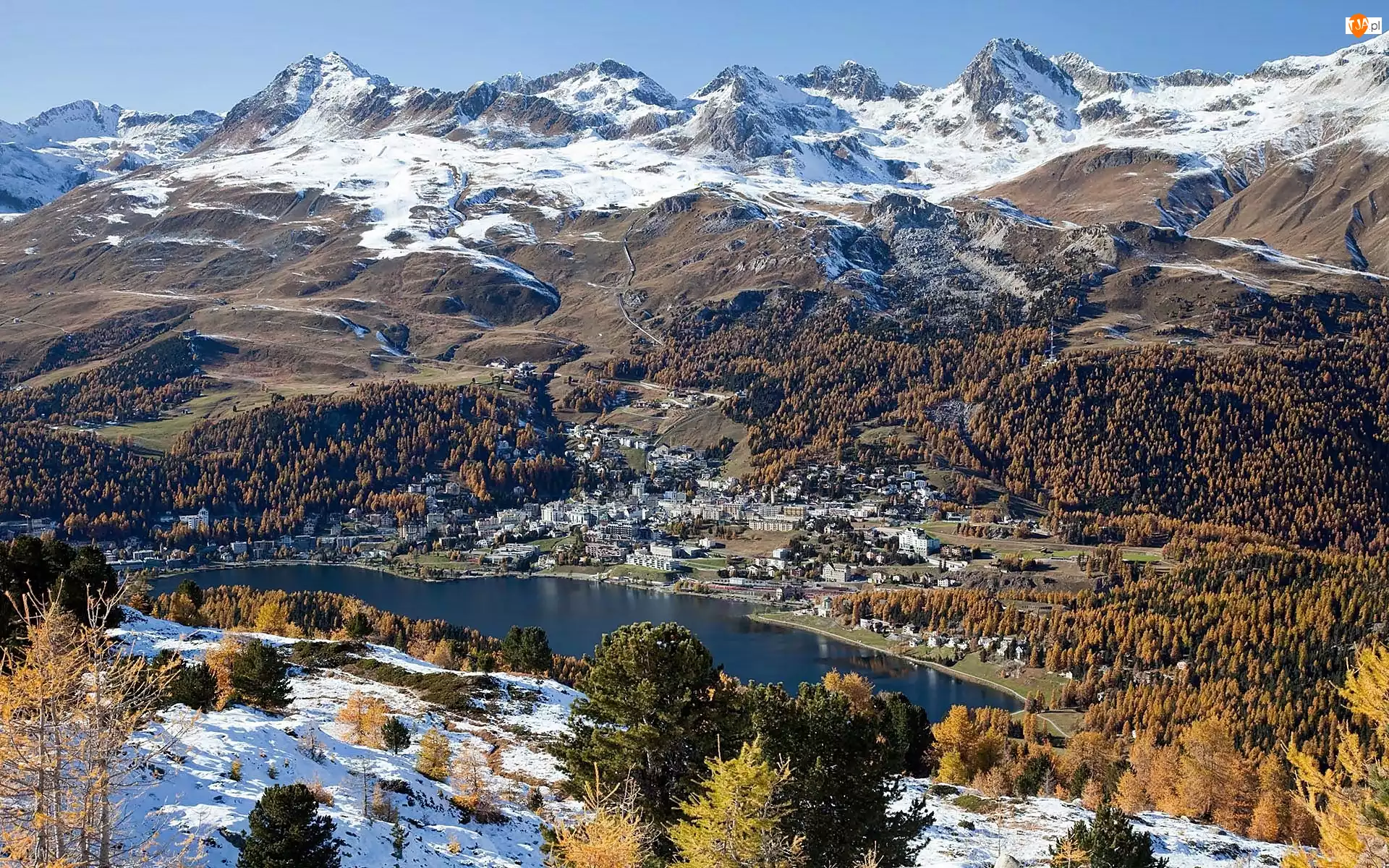 Jezioro, St.Moritz, Lasy, Alpy, Kurort