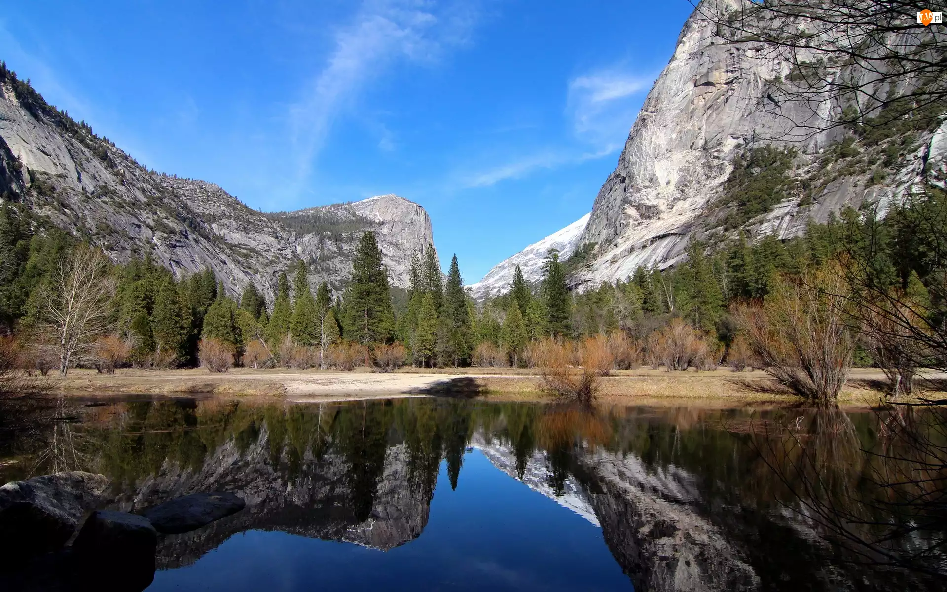 Jezioro, Stany Zjednoczone, Park Narodowy Yosemite, Stan Kalifornia, Góry